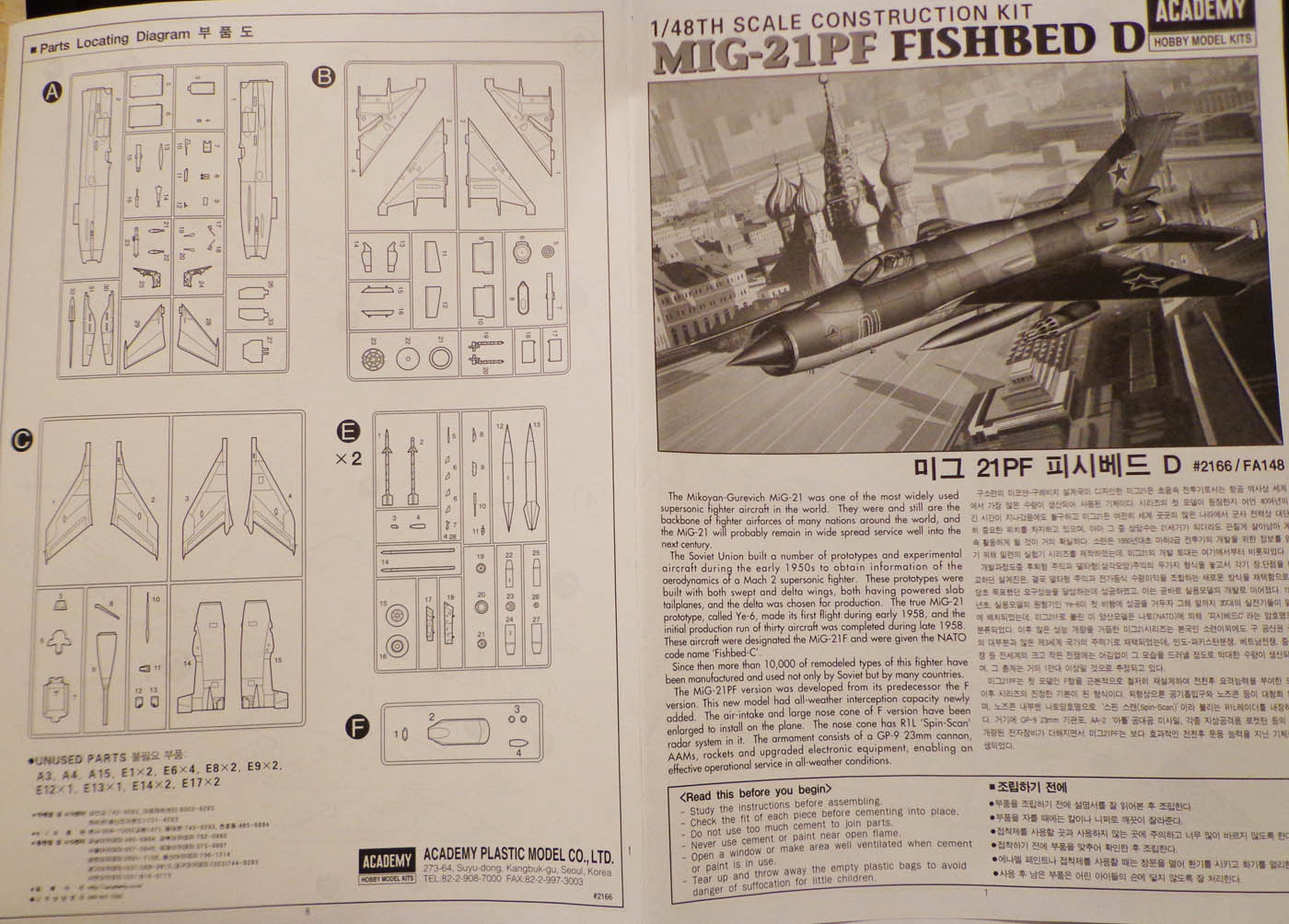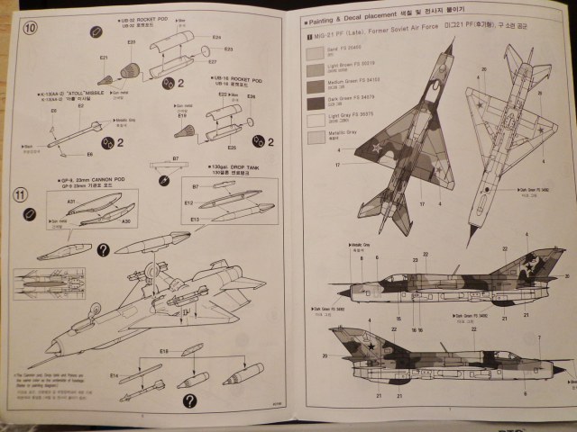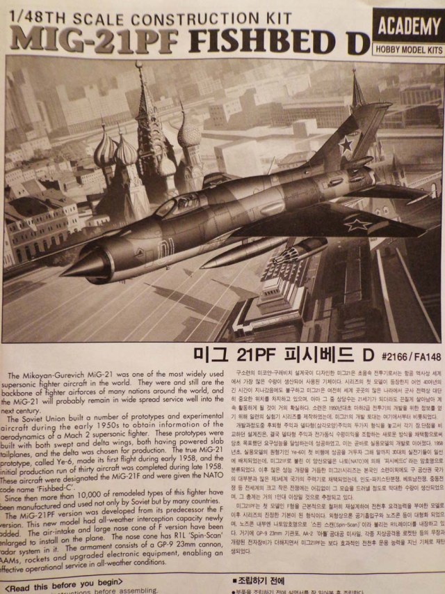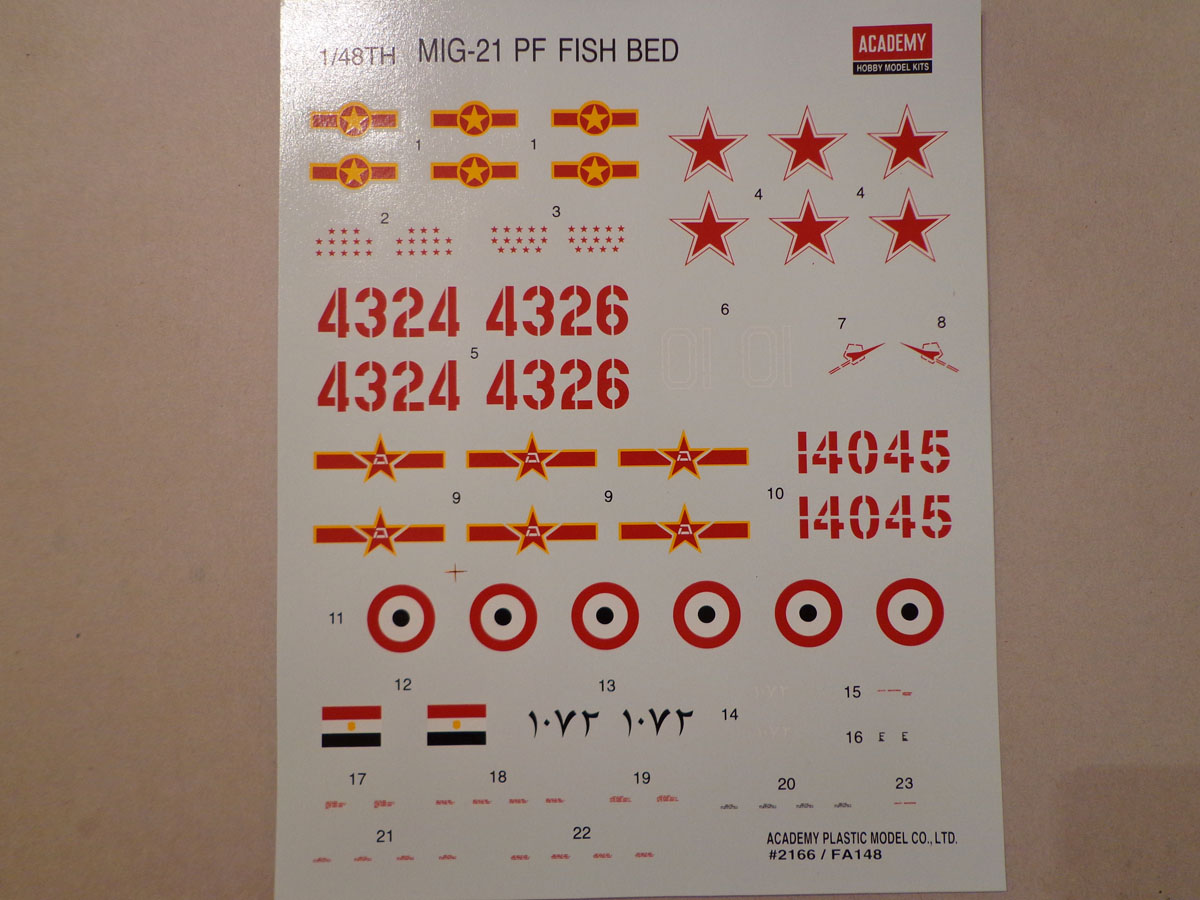 От себя скажу - набор на МиГ-21 похож издалека, в темноте и с пьяну. Начиная с неправильной формы крыльев и заканчивая коротким фюзелем ( почти 1 см, что при таком масштабе уже критично). Вооружение, кабину вместе с остеклением, ниши шасси, стойки, колеса, форсажку - все эо можно смело переместить в мусорное ведро. При желании построить нормальный МиГ-21 - стоит озадачиться покупкой модели от Эдуарда. Там то же потребуется афтер, но в значительно меньших количествах, а главное - там не потребуется кардинального "хирургического" вмешательства.