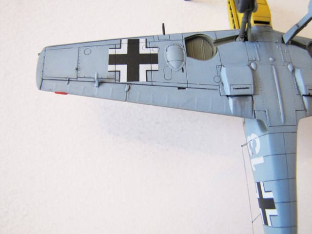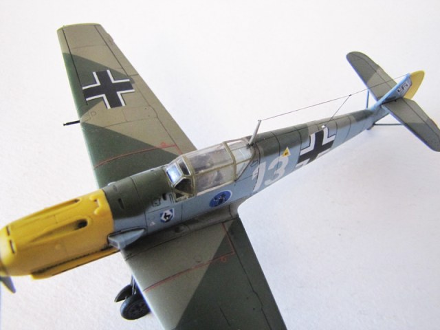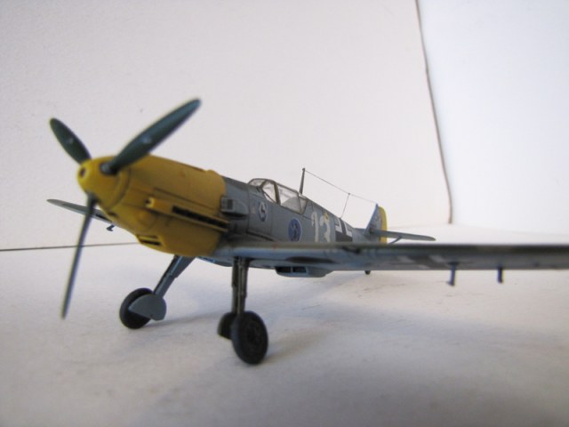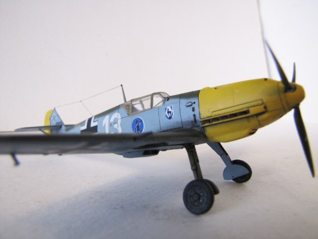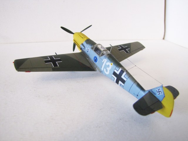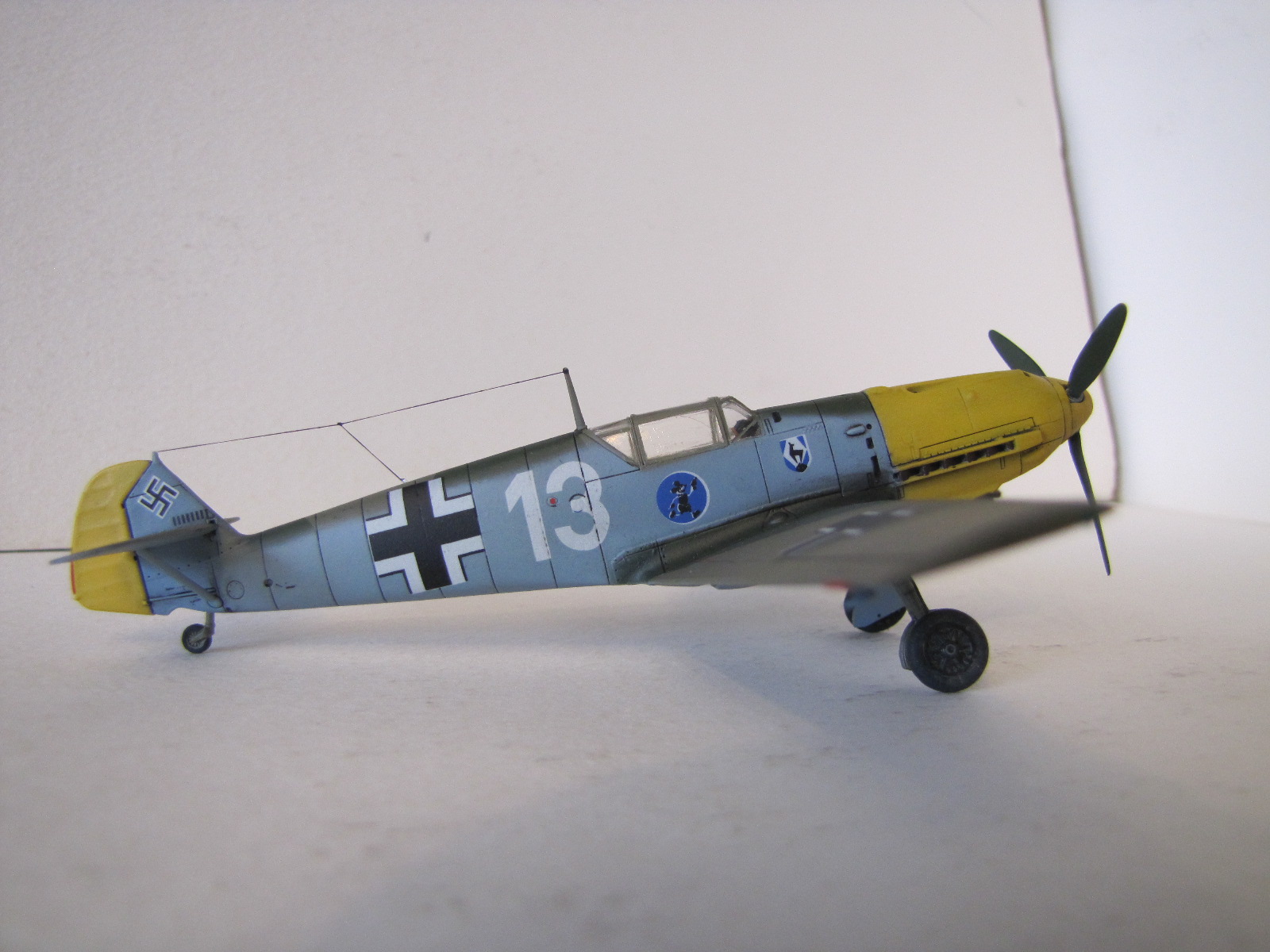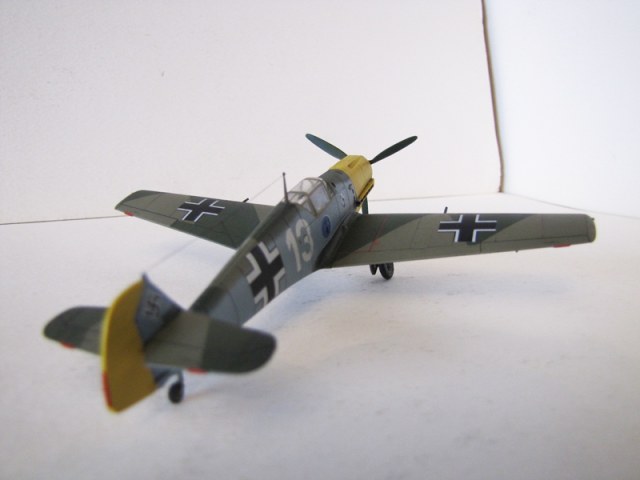 Ещё одна модель,на этот раз Bf.109 E3 от ICM.При сборке пришлось попыхтеть над подгонкой капота к фюзеляжу(капот шире),сделал вставку из крышки доширака.Фонарь на версию Е3 не хотел вставать ни в какую,пришлось заднюю часть фонаря отпиливать от варианта на Е4,только так более менее подошло.Из доработок собственно:добавил швартовочные петли из проволоки на нижнюю поверхность крыльев,бано из прозрачных литников окрашенных цветными лаками,рассверлил выхлопные патрубки,стволы пушек и пулемётов,различные отверстия,добавил привязные ремни в кабину.Окрашивал водным Аканом(не очень понравилось),расшивку выделял маслянной краской на бензине,чуть попачкал пастелью,в конце покрыл матовым лаком Microscale.Декали к сожалению попались со смещением белого цвета на эмблемах,обрезать не стал.В общем сам не очень доволен моделью,мог бы наверное сделать лучше.Сейчас доделываю 109Е4 от Airfix(новая модель),так вот он гораздо приятней в сборке(насчёт копийности не знаю).