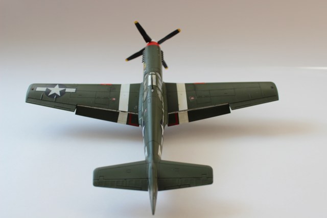 Если рассматривать фотографии реального борта, то видно, что граница раздела красного и белого цвета на коке винта была накрашена крайне неаккуратно. Повторять это не стал умышленно. Интересно то, что в дальнейшем кок был полностью закрашен красной краской. Скорее всего, это было сделано специально к приезду журналистов, собиравшихся запечатлеть одного из лучших американских асов. Но удачи это пилоту не принесло: стараясь произвести впечатление на собравшихся на авиабазе Дебден фоторепортеров, Джентиле, возвращавшийся с боевого вылета, при выполнении прохода на сверхмалой высоте столкнулся с землей. Пилот остался жив, а вот «Shangri-La» разломилась пополам и была сброшена бульдозером в расположенный неподалеку пруд. Случилось это 13 апреля 1944 года. Больше капитан Джентиле боевых вылетов не совершал.