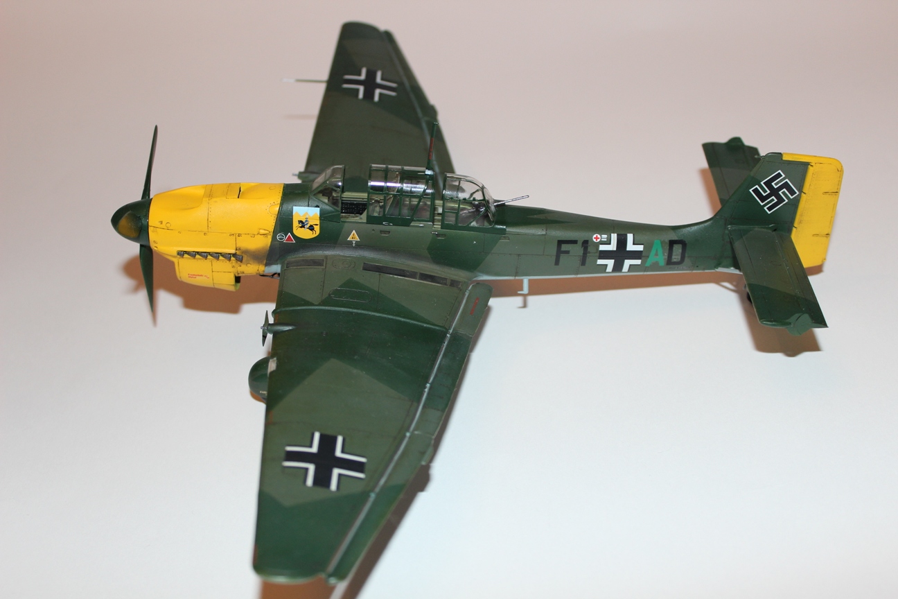 В выборе прототипа для модели альтернатива желтоносой машине из Stab III/ StG 77 (Болгария, апрель 1941 г.) отсутствовала, т.к. декалей для других схем окраски уже не было.