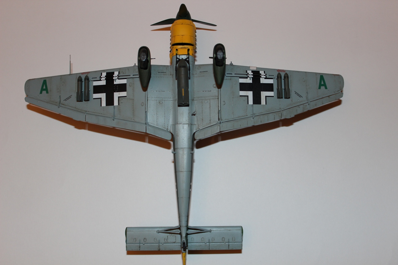 Нормальная и довольно аккуратно сделанная модель. Просто хотелось бы отметить, что "желтый" - это RLM04, т.е. это тоже стандартный цвет люфтваффе и он не абы как желтый. Поэтому просто XF-3 "Flat yellow" от Тамии тут неуместен. Посмотрите этот цвет у АКАНа, он слегка оранжевый, а не лимонно-желтый. Сам крашу тамией - эти краски называют гламурными, из-за излишней для боевой техники насыщенности и яркости))).