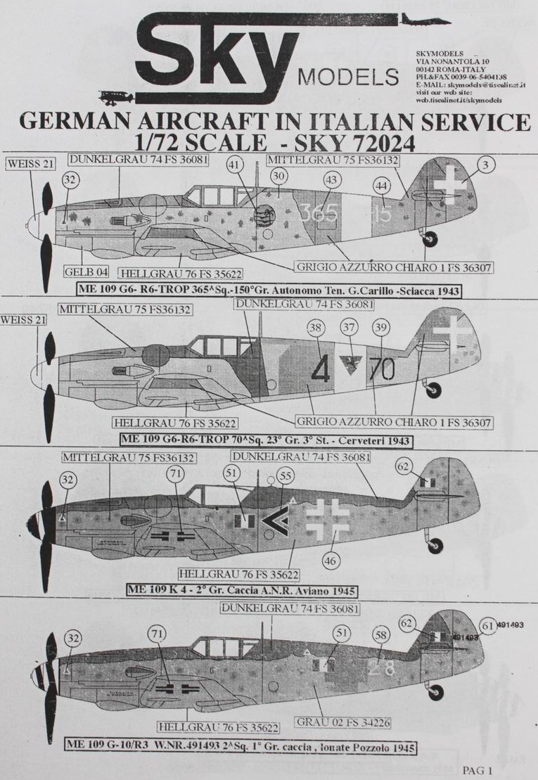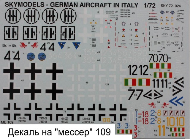 Набор декалей итальянской фирмы "Sky Models" "Немецкие самолёты на службе Италии".