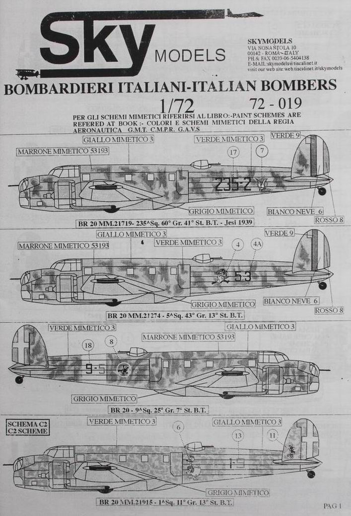 Набор декалей итальянской фирмы "Sky Models" "Итальянские бомбардировщики"