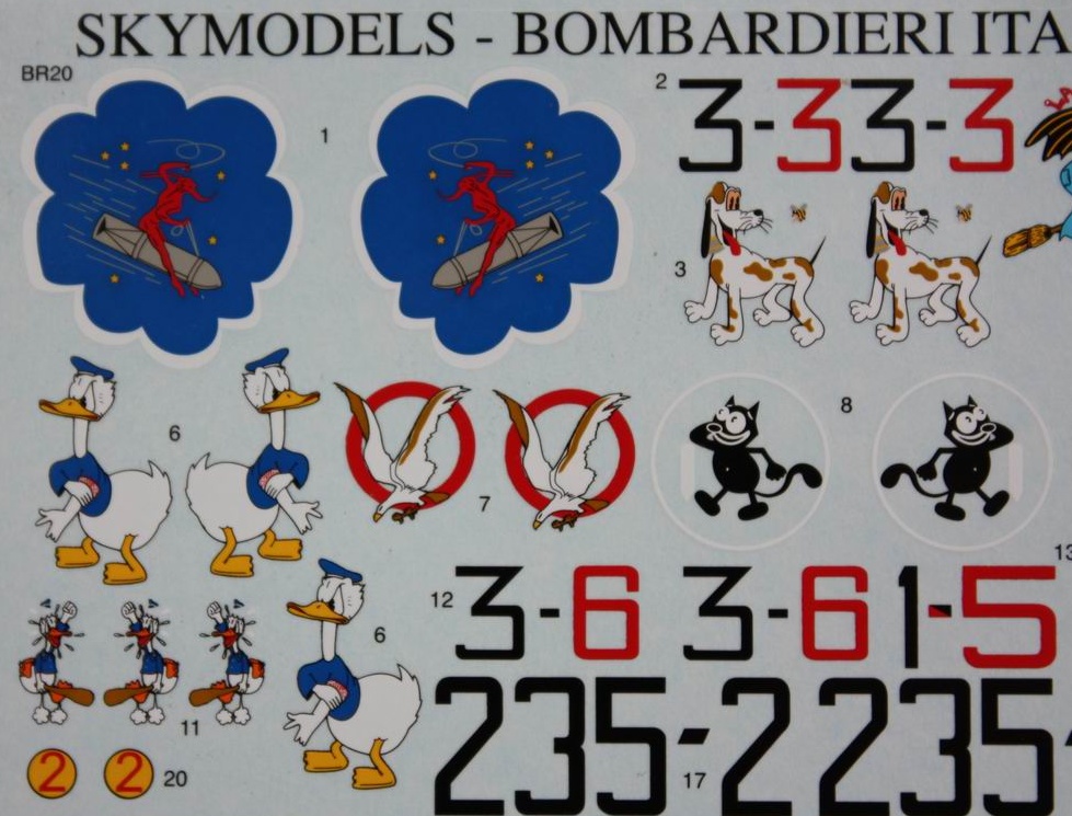 Особенно для Фиат БР.20 от "Итальери" - там окраски вообще скудные (мягко сказано). А здесь самые разнообразные фигурки на борту: хочешь - собачка, хочешь - ведьма :-)))
