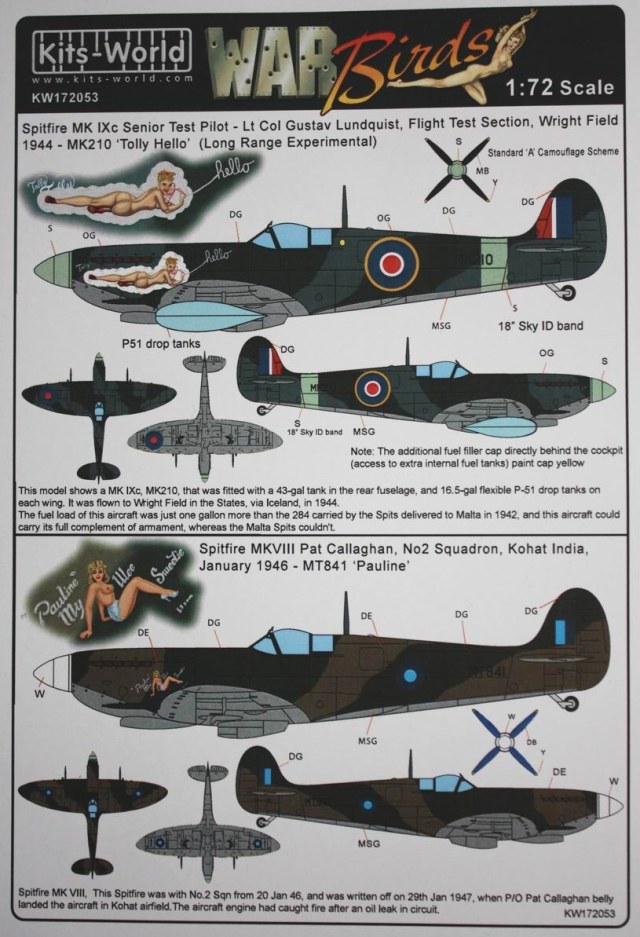 Spitfire IXc, MK210, Tolly/Hello (reclining node artwork), Lt Col Gustav Lundquist, USAAF, Flight Test Section, Wright Field, late Spring 1944, Bluie West 8, Greenland, & Boscombe Down, England.
