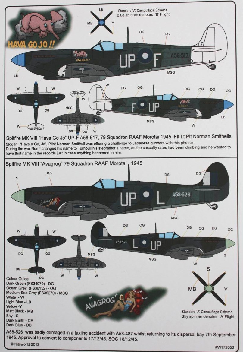 Фото по второму борту с декали Spitfire Mk.VIII 'Pauline' Pat Callaghan No2 Squadron India 1946