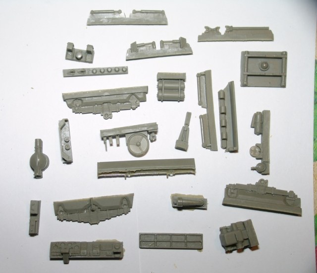 Материал смола и фототравленка, качество отливок достаточно выскокое, достаточно большое количество деталей. Но тоже требует некоторых доделок.