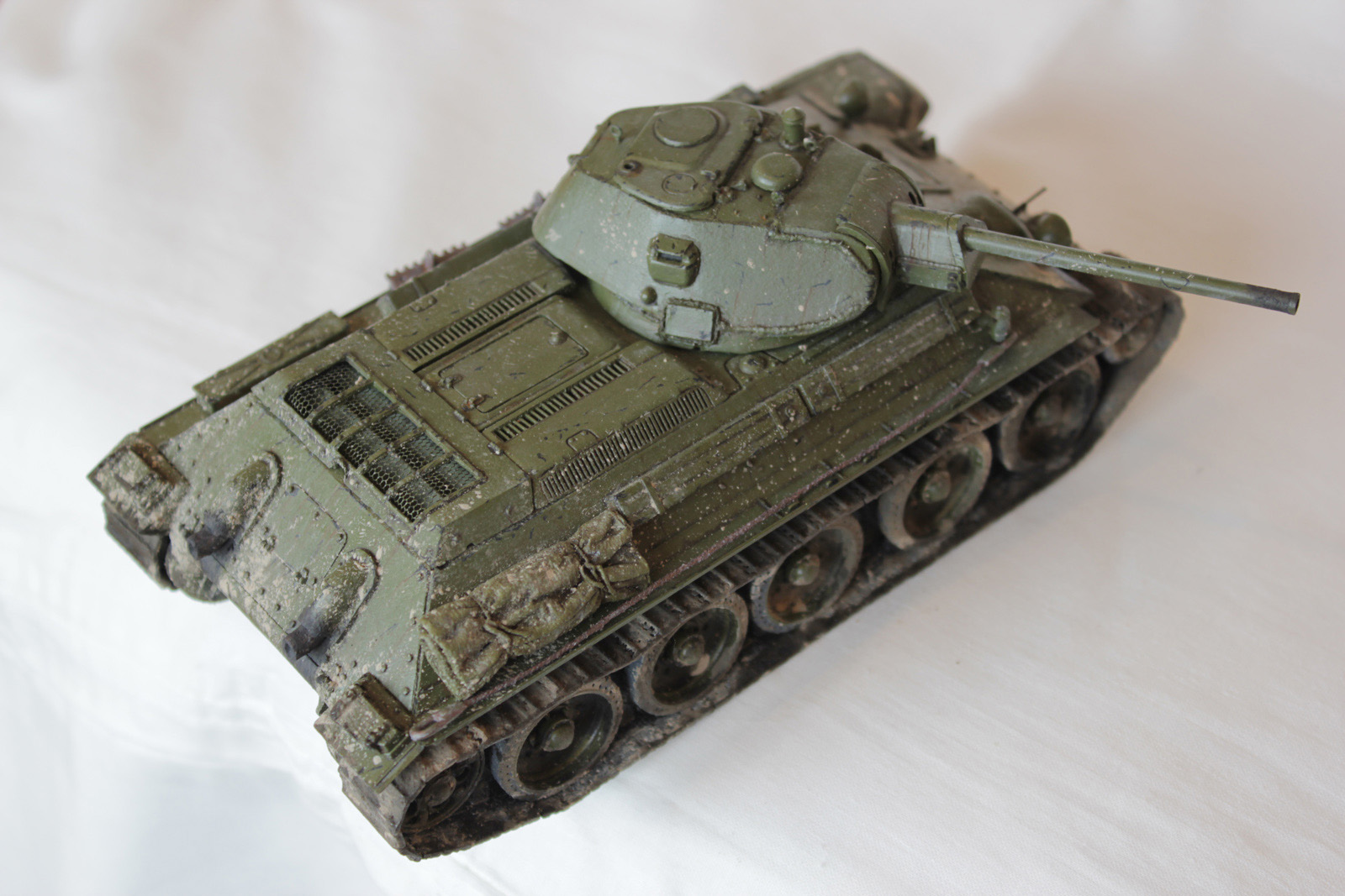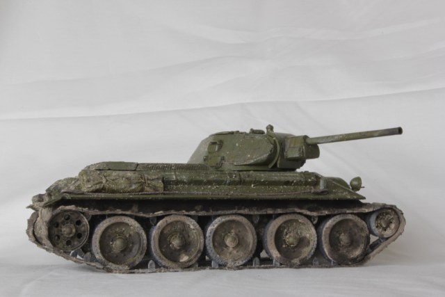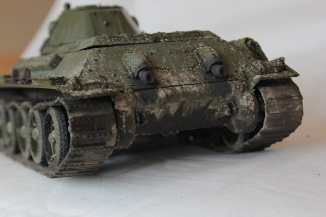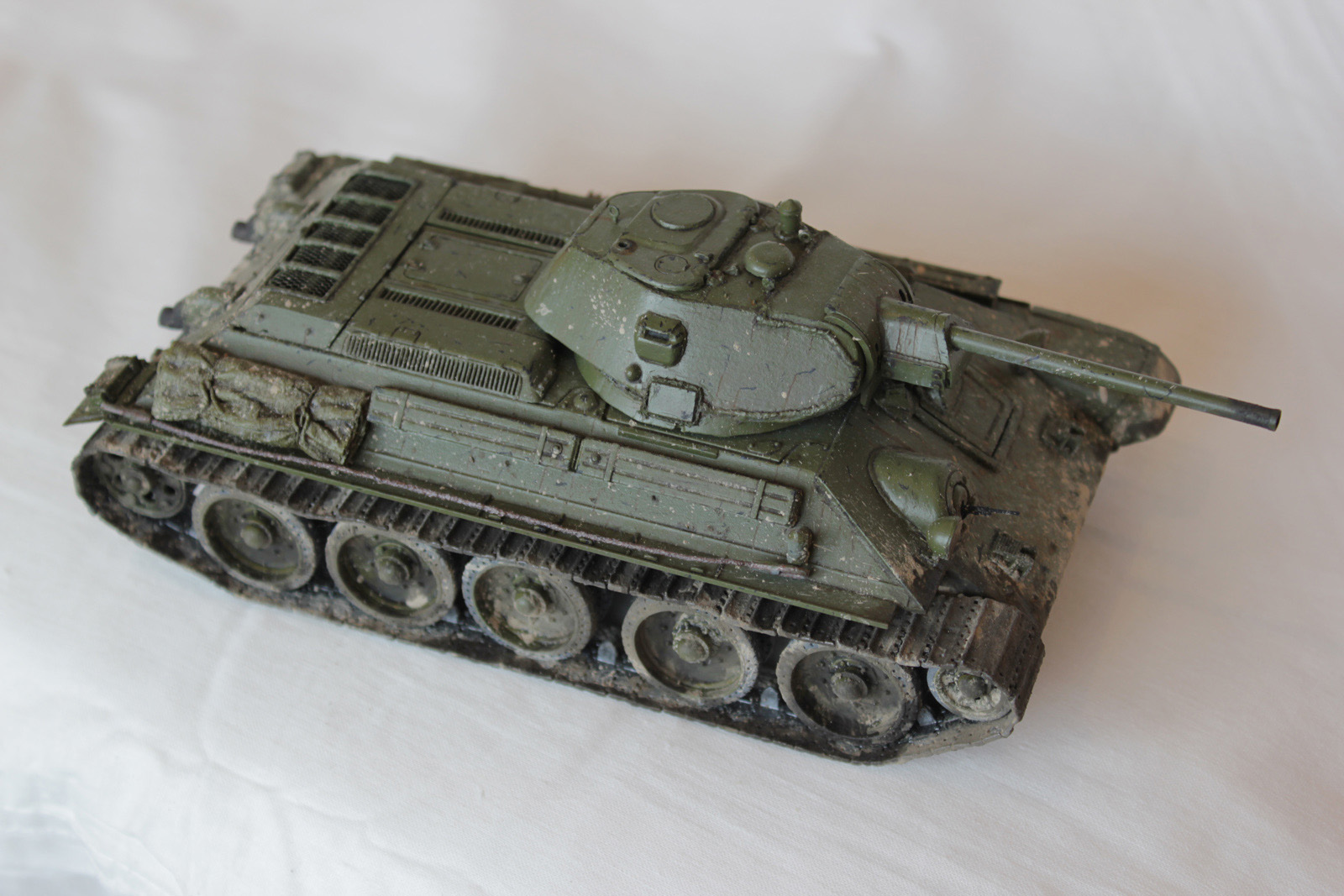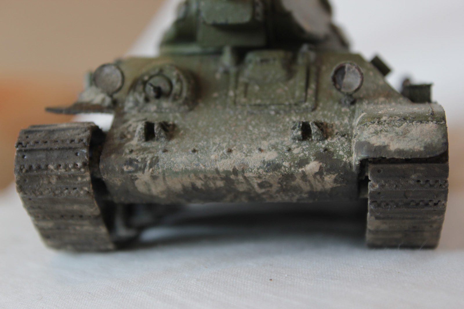 В целом, неплохо. Насчет грязи - как раз такой вид имеет машина, промчавшаяся на полной скорости по грязному полигону, брызги летят выше башни, так что загрязнение довольно реалистично. Из бросающегося в глаза: толстые стенки выхлопных патрубков, нет спаренного пулемета (хотя вдруг сняли), по грунтозацепам пройтись металликом или карандашом.