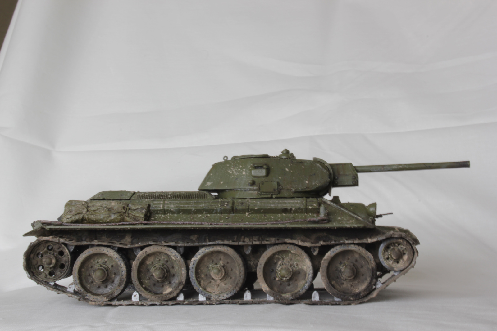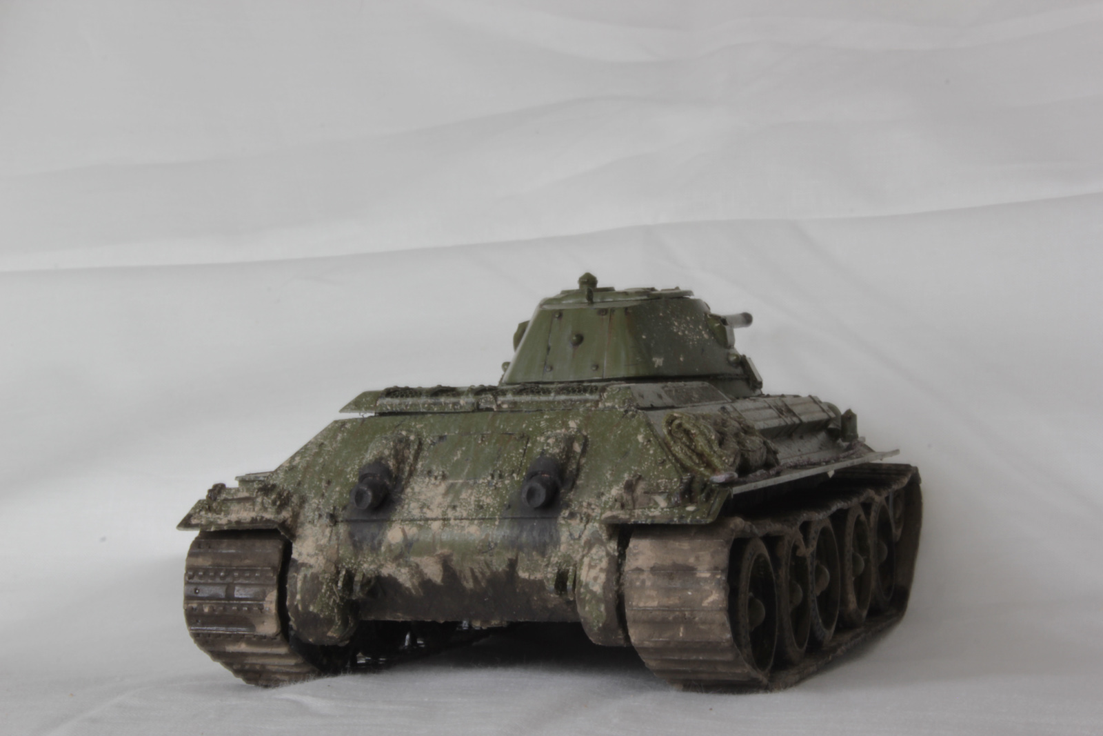 Добрый день уважаемые коллеги! Представляю на ваш суд модель Т-34/76 обр. 1941 года от Макета. Модель собрана практически из каробки (сварочный шов на башне - нить+брезент от модель поинт). Качество изготовления деталей нормальное, облоя практически нет. Стыкуемость, скажем так, не идеальная, зато много поработал напильником, опробовал шпатлевку от Тамии. В комплекте не нашел ни одной декали, поэтому танк без номеров, надписей и т.п.