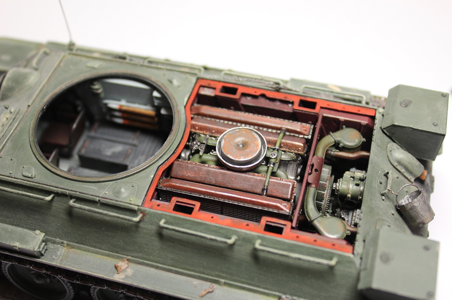 Не мешало бы гусянку подкрасить и припылить,по граням графитом пройти,все таки добавит металла в работу.И внутрянку люков загрязните,а-то уж белоснежные они какие-то.А в общем,не плохо.С уважением.