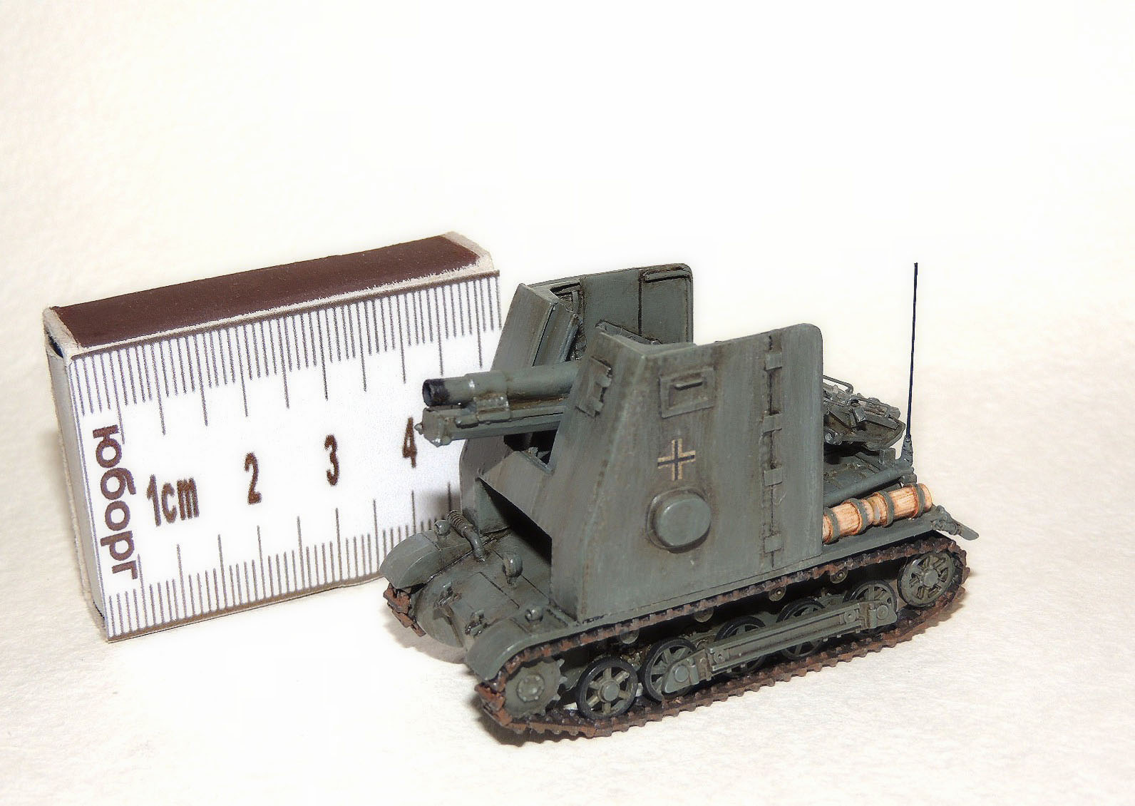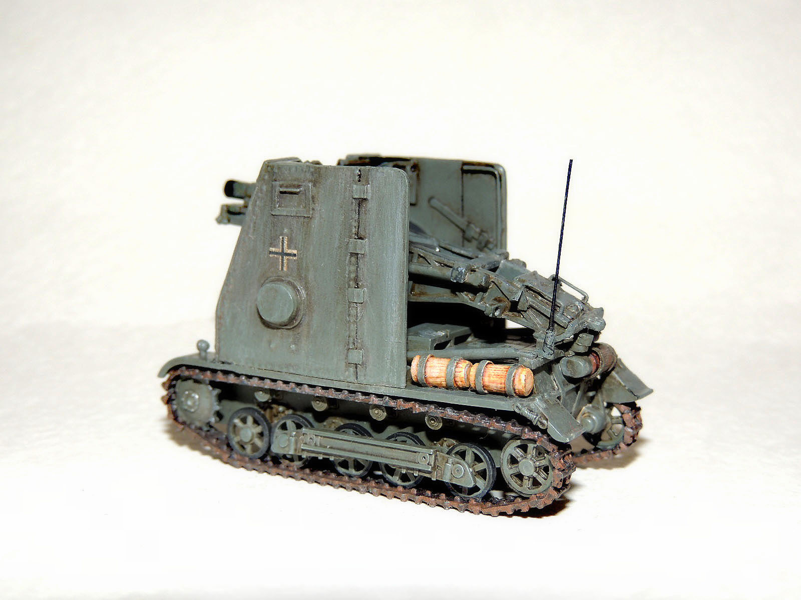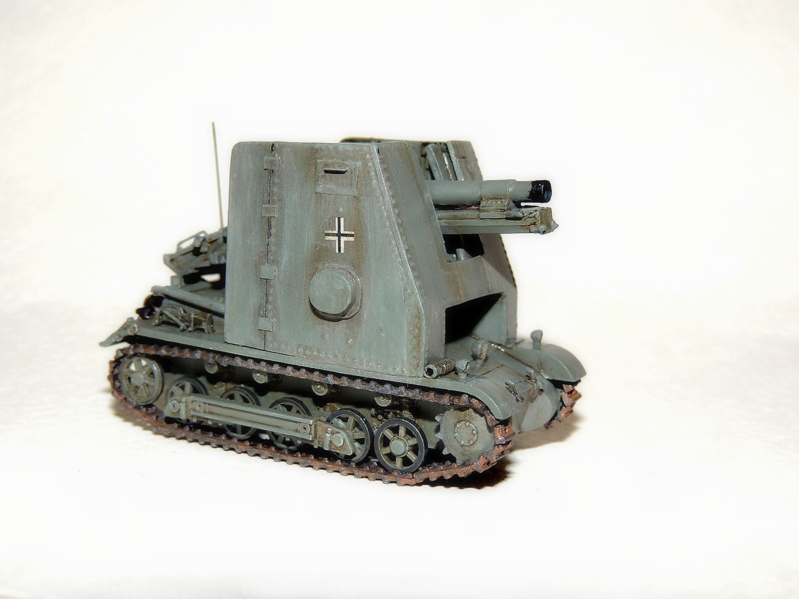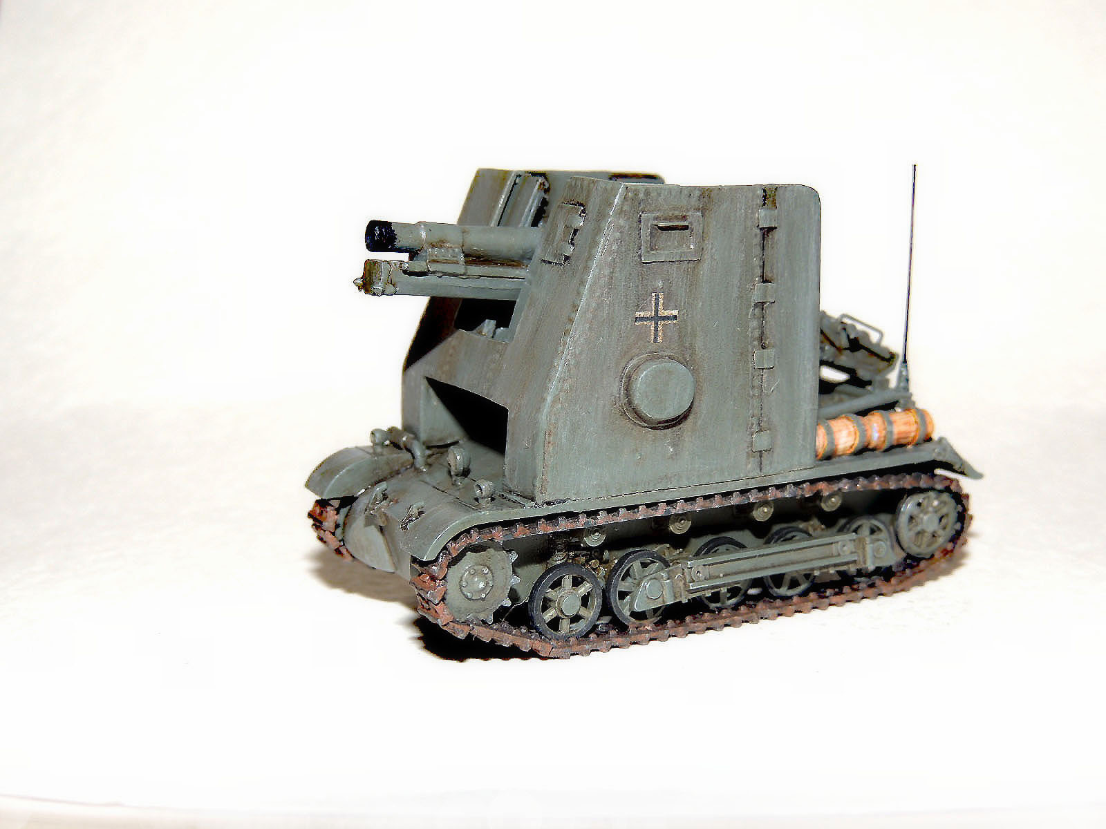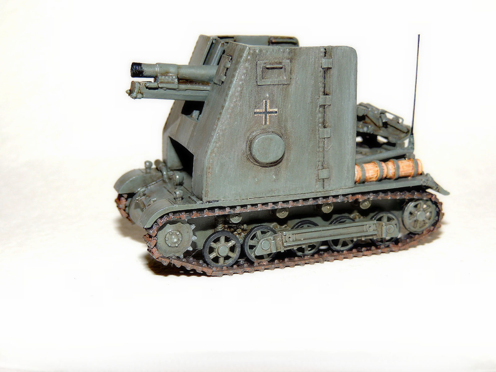 За основу взял «Италовский» Pz.Kpfw.I Ausf.B(ходовую и кормовую часть) и «асешную» гаубицу(к стати сказать с неплохой детализацией), остальное пилил.