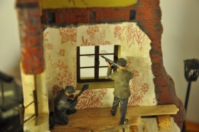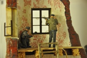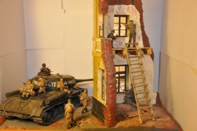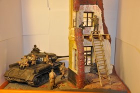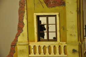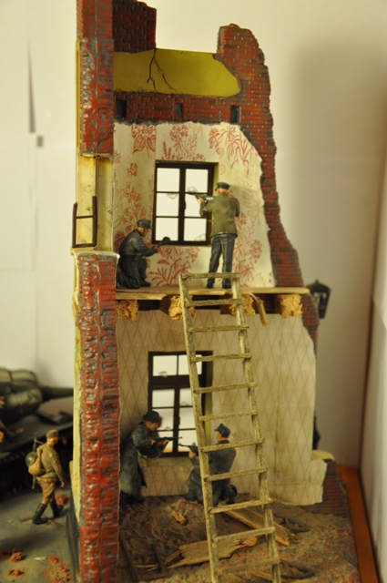 пожелания- в диораме все должно быть логично.. если нет крыши у здания- ее обломки должны лежать внизу, если стены разрушены- кирпич.. брусчатка после боев- как минимум разбита должна быть..