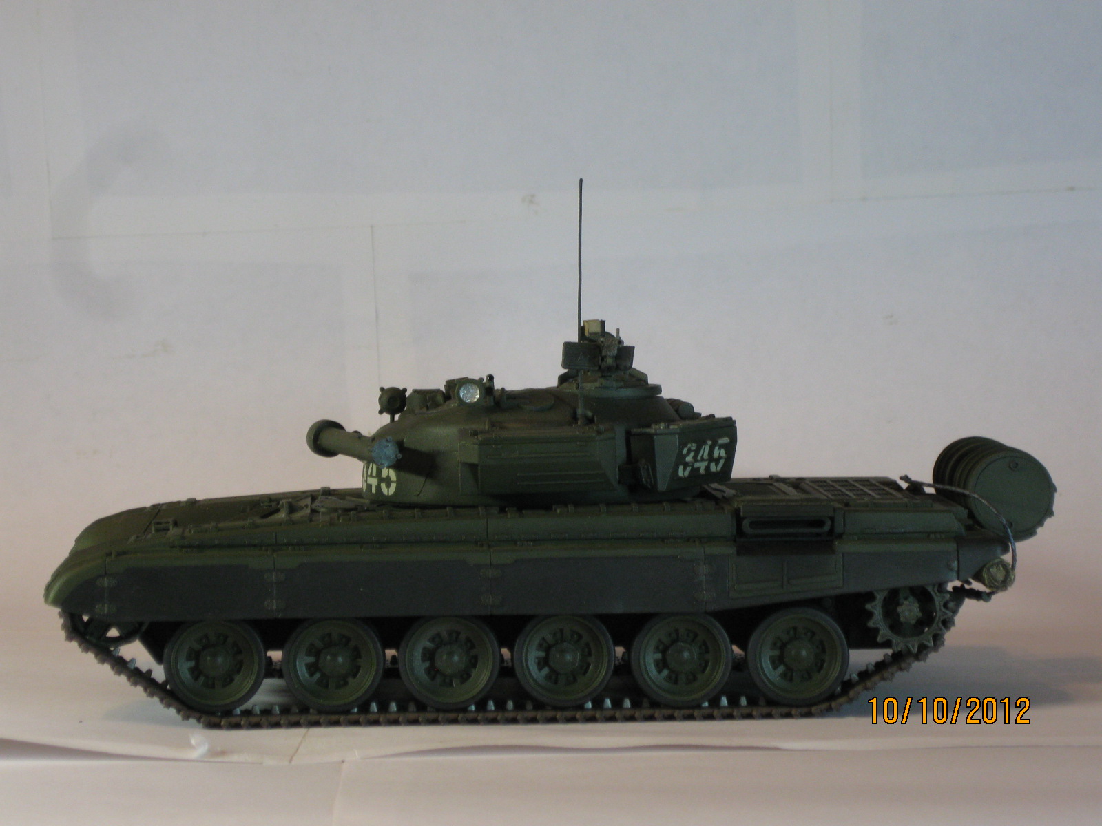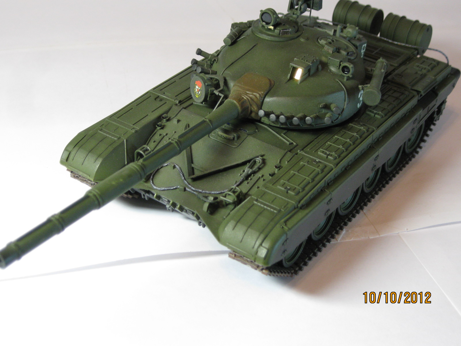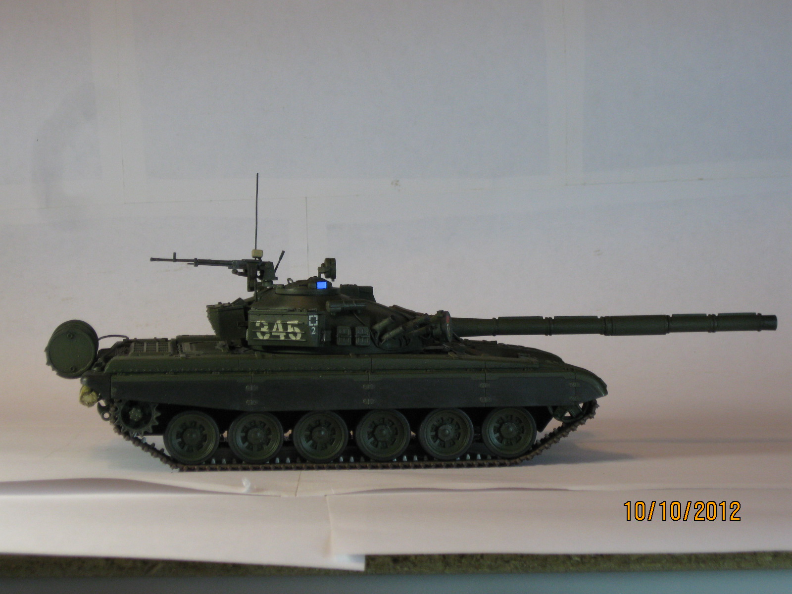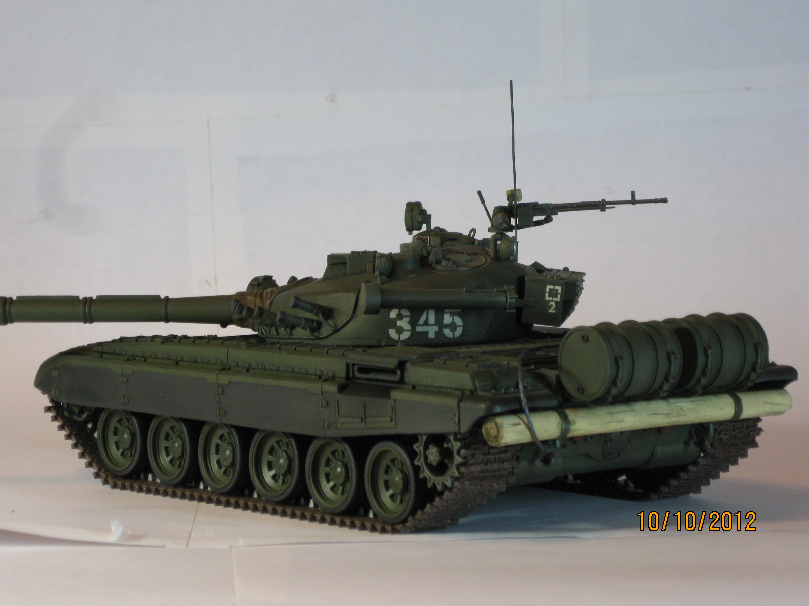 Снова всем привет.Выставляю модель танка Т-72А от ЗВЕЗДЫ.Краску мешал на глаз.От себя:тросы,антенна,триплексы,проводку,бревно.Вроде все. Смотрите.