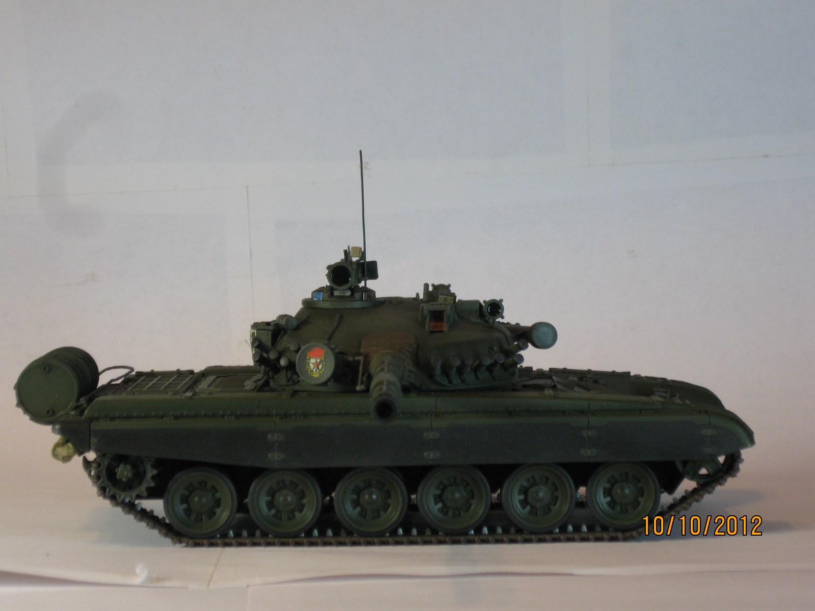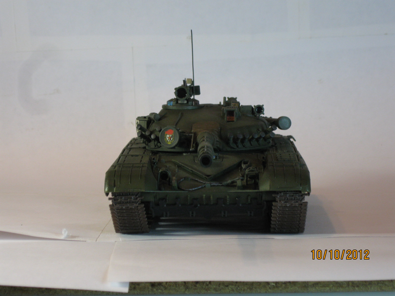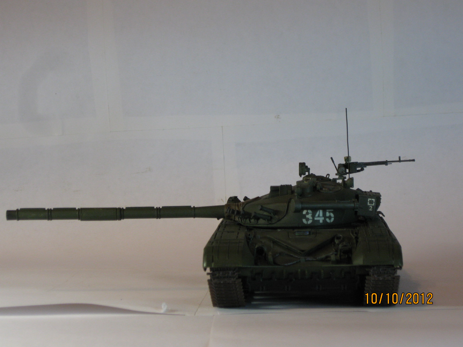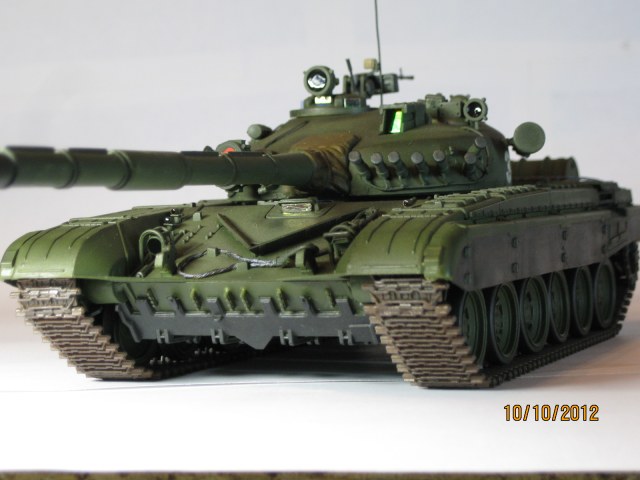Снова всем привет.Выставляю модель танка Т-72А от ЗВЕЗДЫ.Краску мешал на глаз.От себя:тросы,антенна,триплексы,проводку,бревно.Вроде все. Смотрите.