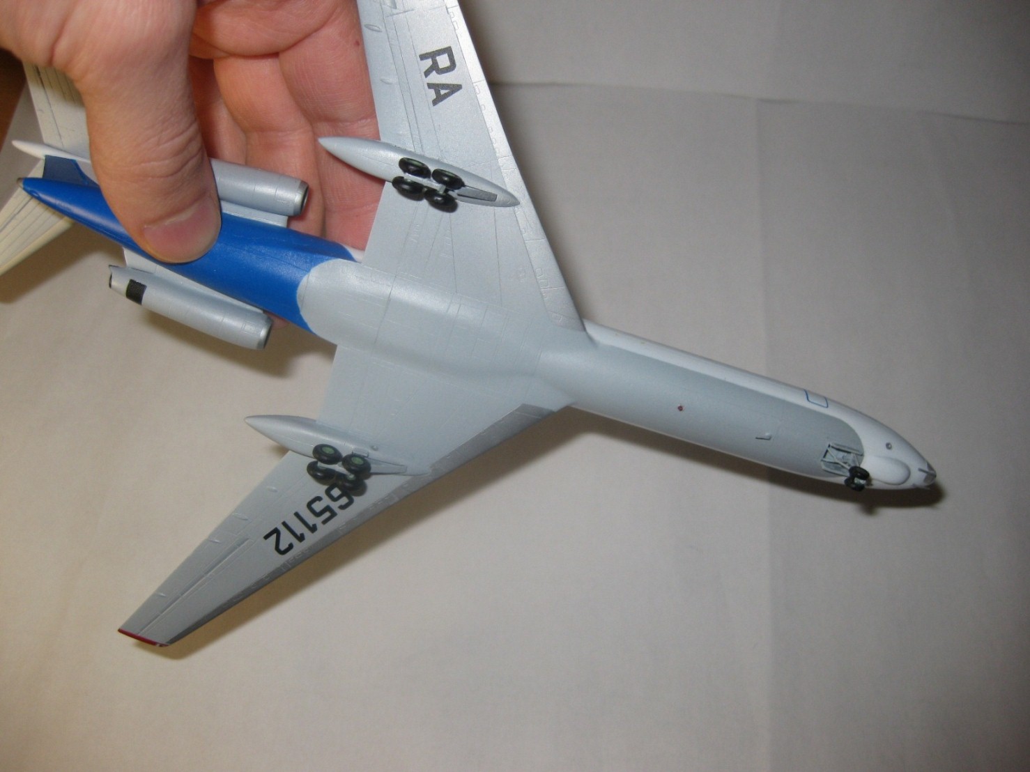 Модель выполнена с минимальными доработками, это фары, АНО, маячки, стеклоочистители, металлические штоки амортизаторов всех стоек шасси. Модель выкрашена полностью эмалевыми красками Tamiya с использованием трафаретов собственного изготовления, за исключением герба Санкт-Петербурга - декаль Ascensio, флаг РФ - декаль от модели Ан-74 Амодел.