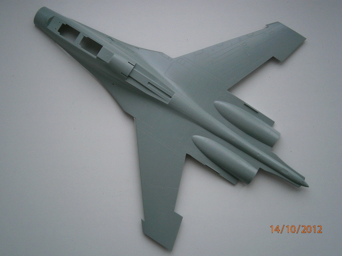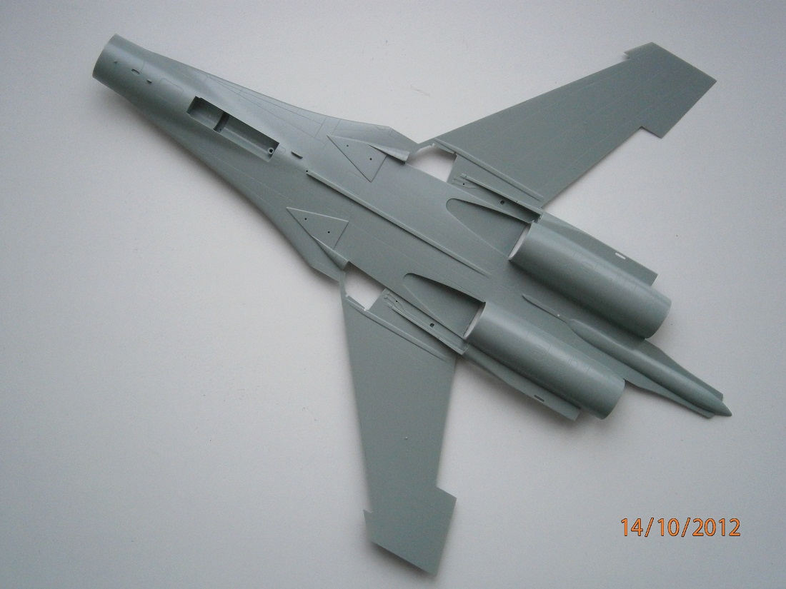 Из афтера - сразу менять колеса. Я бы прикупил Экипажевсуий комплект. Так же кабину в утиль, нос, сопла. Крой не в дугу (перекочевало с Су-27 УБ), интерьер ниш шасси никакой - это уже ручками. Ну и остекление менять надо на вакумформу - во первых тоньше, а во вторых академ все равно дает неверное по форме. Так что геморроя с данным набором...