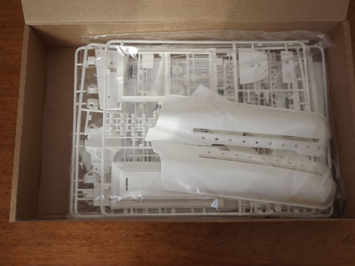Модель в масштабе 1/200 от «Звезды» является перепаком Heller. Набор упакован в небольшую, для кораблей от Звезды, упаковку с обложкой из тонкого картона. Внутри коробки находятся упакованные в пакет три литника с деталями, половинки корпуса и палуба, отделенные от литников. Все детали выполнены из белого пластика. Качество отливок среднее, присутствует достаточное количество облоя, утяжин. Однако текстура дерева на палубе и корпусе выражена достаточно ярко. Не очень понравились лафеты пушек, как мне кажется, сделаны очень упрощенно. Длина корпуса примерно 25см.
