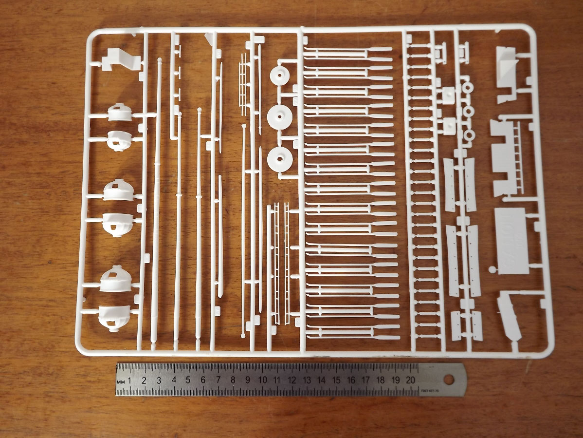 Интересная модель.С текстурой дерева -широкое поле для деятельности.Лафеты придется подпилить,колеса поправить.Облой и утяжины присутствует на 90% (если не 98!!!)пластиковых моделей,тут уж ничего не попишешь.Масштаб мал конечно,но тем и интересен.Успехов в работе.С уважением.
