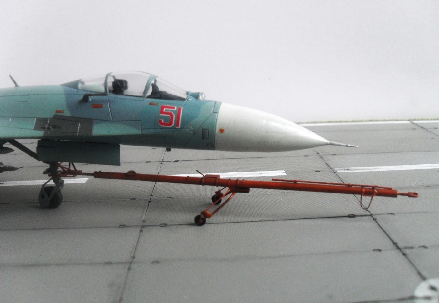 Аэродромное водило К2К (вроде бы), производства украинской конторы под названием «Армори». Набор смоляной, детали довольно хрупкие. Инструкция по сборке мне не понравилась по причине своей малоинформативности. Обо многом приходится просто догадываться. По этим причинам некоторые фрагменты водила пришлось изготовить из медной проволоки разных диаметров. Особо не заморачивался, просто решил в дальнейшем оформить фотосессию в стиле Дениса 0102. Попутно еще строю АПА-5 от того же «Армори». Задумок много, а что получится из этого – вопрос третий. Стоимость данного девайса на сайте «Армори» 128 украинских гривен, что составляет чуть более 500 рублей или же 16 $. Окрашеноглянцевым акрилом«Хобби Колор» Н – 14 «Orange», после «Футура». Смывка – гуашь + фейри. В конце матовый лак «Тамия» TS– 80. Гидравлические шланги и трос делать не стал. На двух последних фото – совместно с агрегатоносителем.