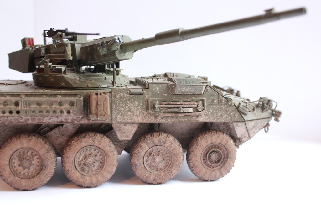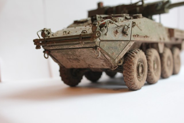 Да, прототип очень интересный. По качеству вашей сборки не знаю, мне ещё предстоит собрать свой такой Stryker , но вот с грязью это перебор…