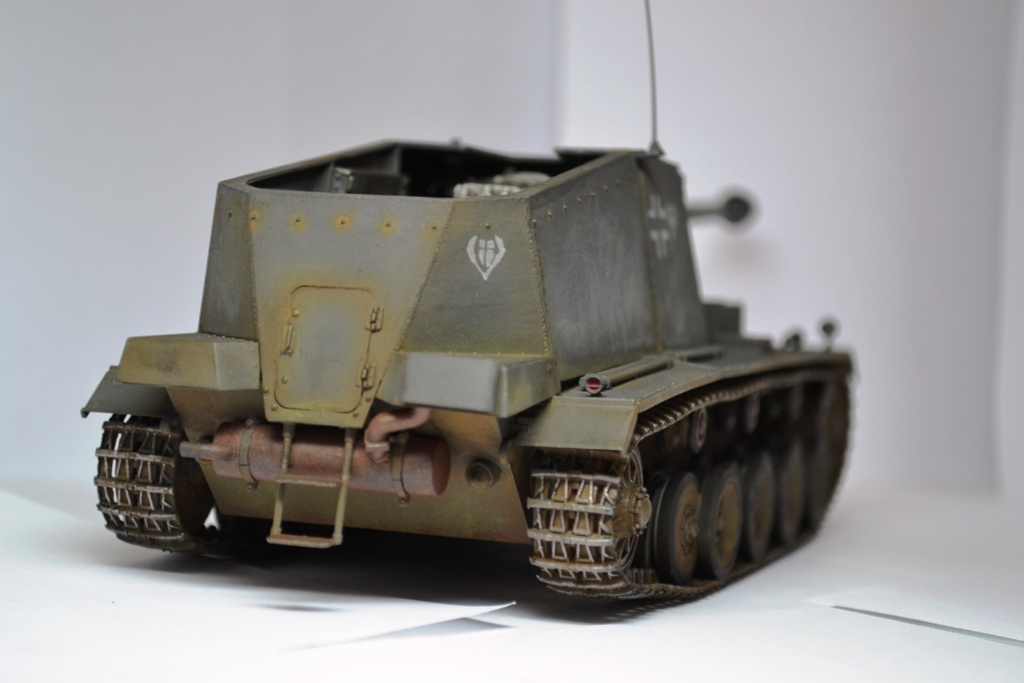 Особенно говорить нечего, сборка прошла как по маслу. По покраске были применены мною уже использованные до этого методики. Единственно, что хотелось сказать это то, что вместо декалей вырезал трафареты и красил обозначения белым акрилом.