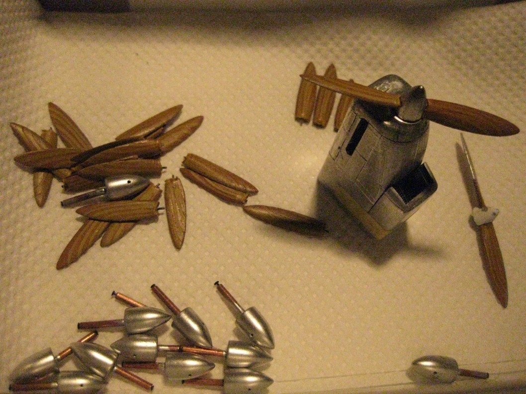 Модель построена из листового и гофрированного пластика...Из-за большого размера , усилена дюралевым профилем по всему размаху и имеет сьемные консоли ( на болтах)...Двигателя, тандемы, пропеллеры, шасси отлиты из эпоксидки...Для демонстрации кабины, верх кокпита сьемный...Элероны, рули высоты и направления, триммера, пропеллеры и шасси подвижные...Модель обтянута фольгой. Построена по оригинальным чертежам АГОС ЦАГИ . На постройку ушел год...Длина модели 0,54 и размах 1,32 метра.