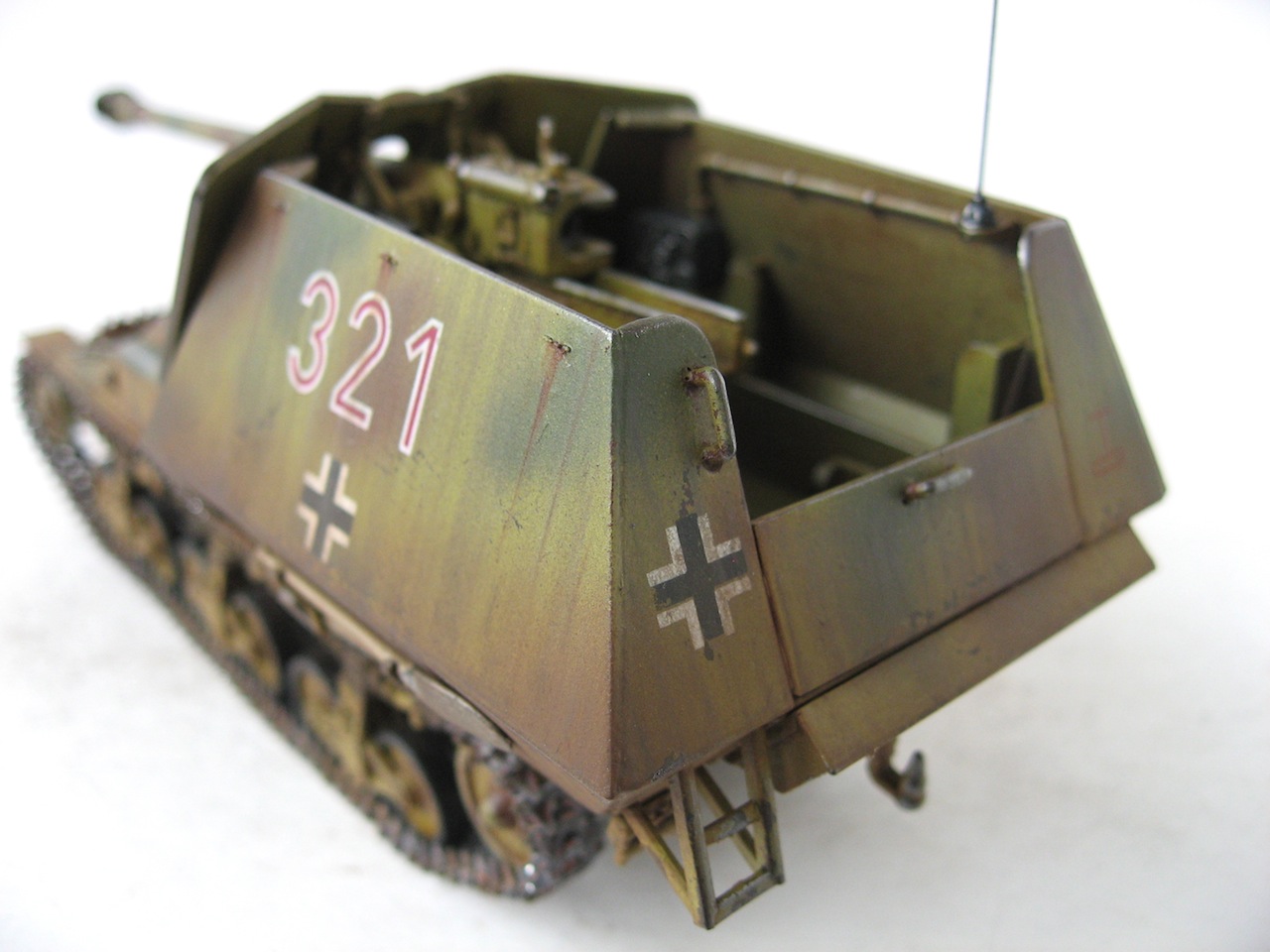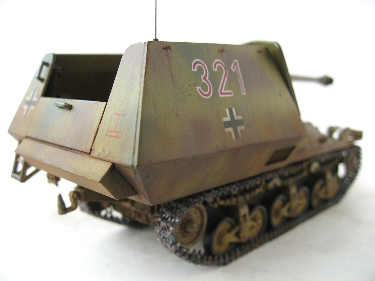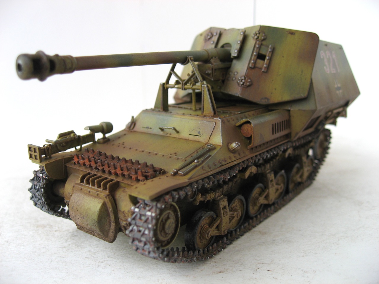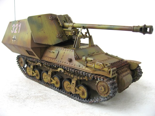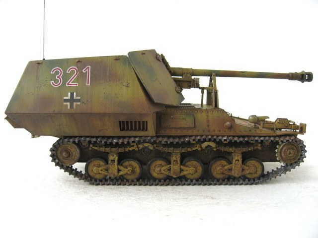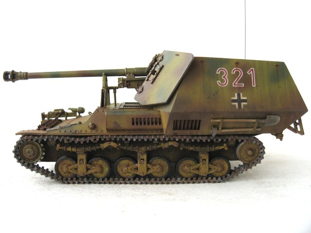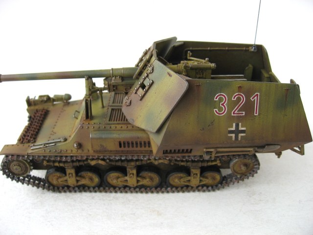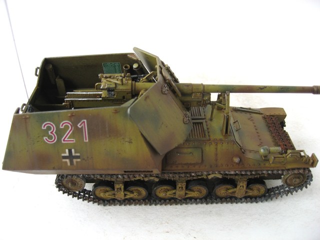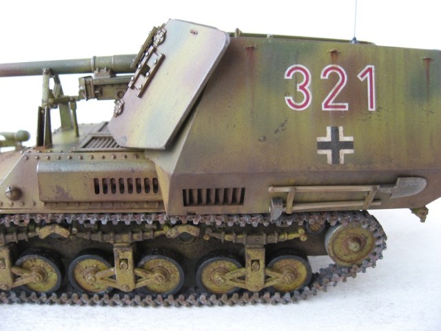 Заменил ствол на Jordi Rubio. Поставил траки от Friulmodel. Красил акрилом Vallejo. Пигменты масло MIG. Родные декали ставить побоялся. Кресты задул краской по трафаретам Eduard. А номера, сухие декали от АК.
