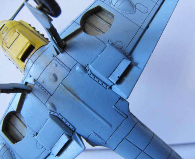 3.так как фикс даёт возможность сделать закрылки выпущенными,отрезал совки крыльевых радиаторов,сделал их из фольги и приклеил в отклонённом положении,мне показалось,что так будет более правильно