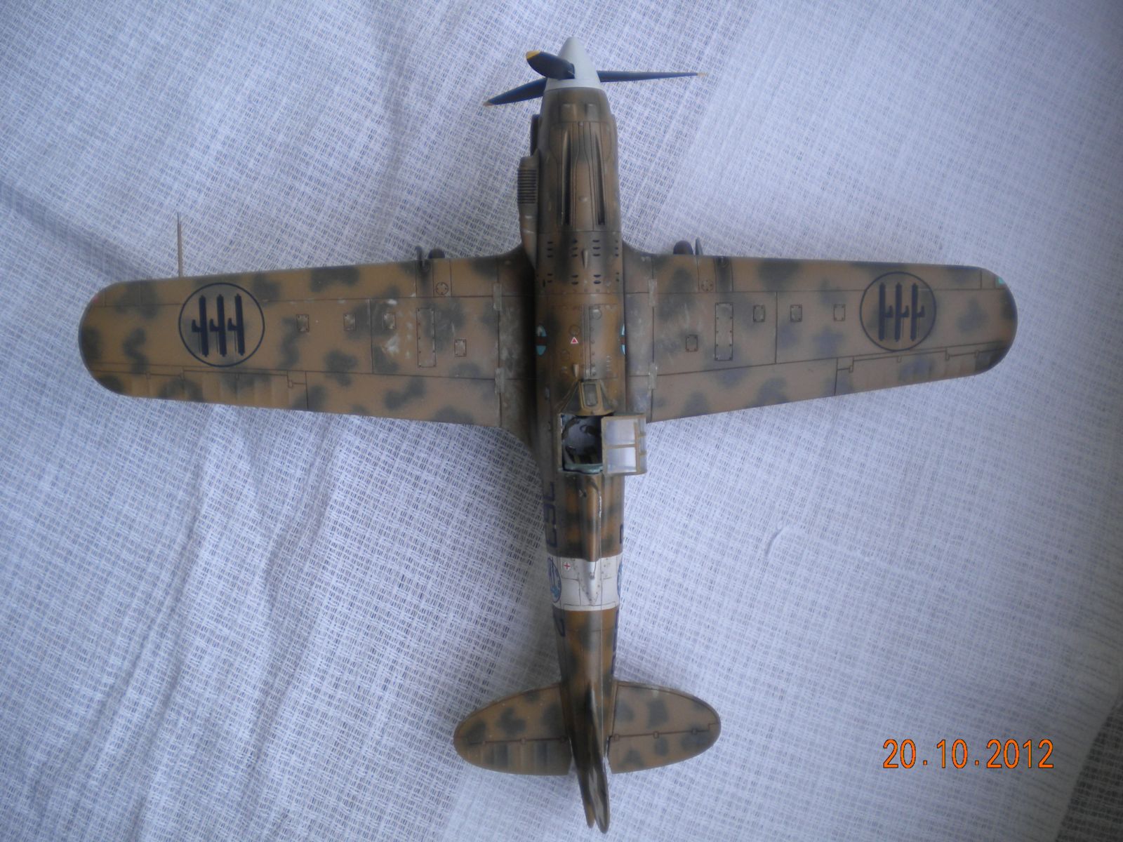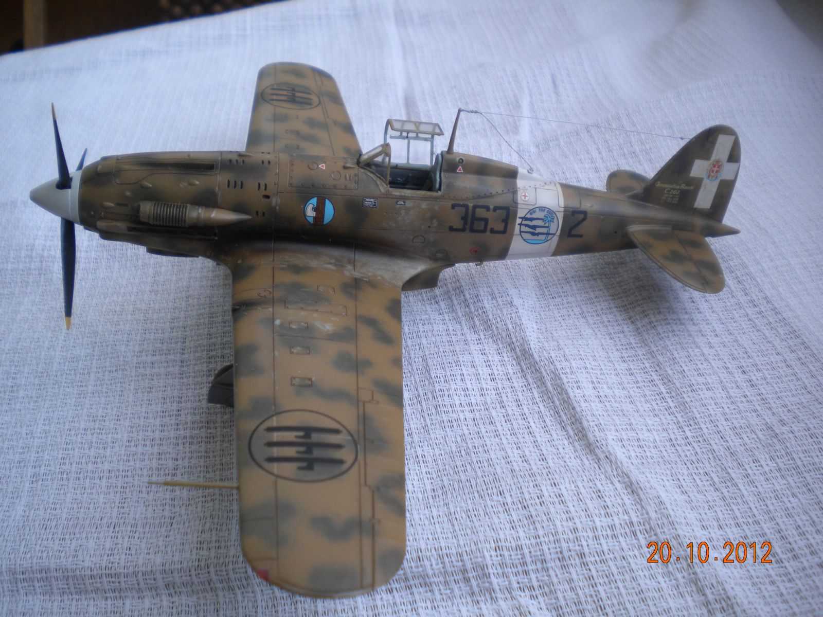 Аха,не успел сказать по Макки 202,а Вы уже его выложили.Створки(малые) шасси толстоваты,камуфляж хорош,вот только окраска кабины была светло-зелёной,патрубок вентиляции перед кабиной не рассверлен.На нижнем капоте двигателя были воздухозаборники охлаждения и вентиляции двигателя,на модели они глухие? Работаю над такой моделью,много доработок.Не придираюсь. Успехов!