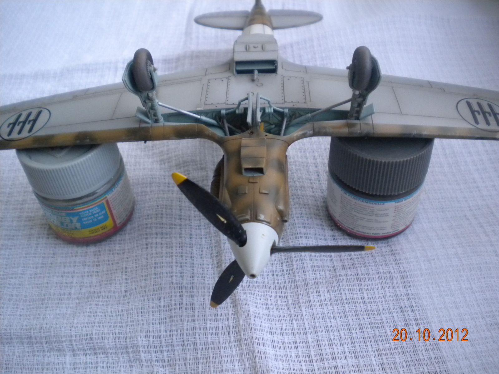 Красивый самолет получился. Про створки ниш шасси уже сказали, а в остальном - работа замечательная. Ободранности на крыльях и фюзеляже очень натуральны.