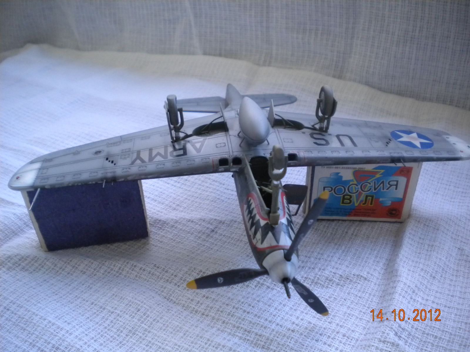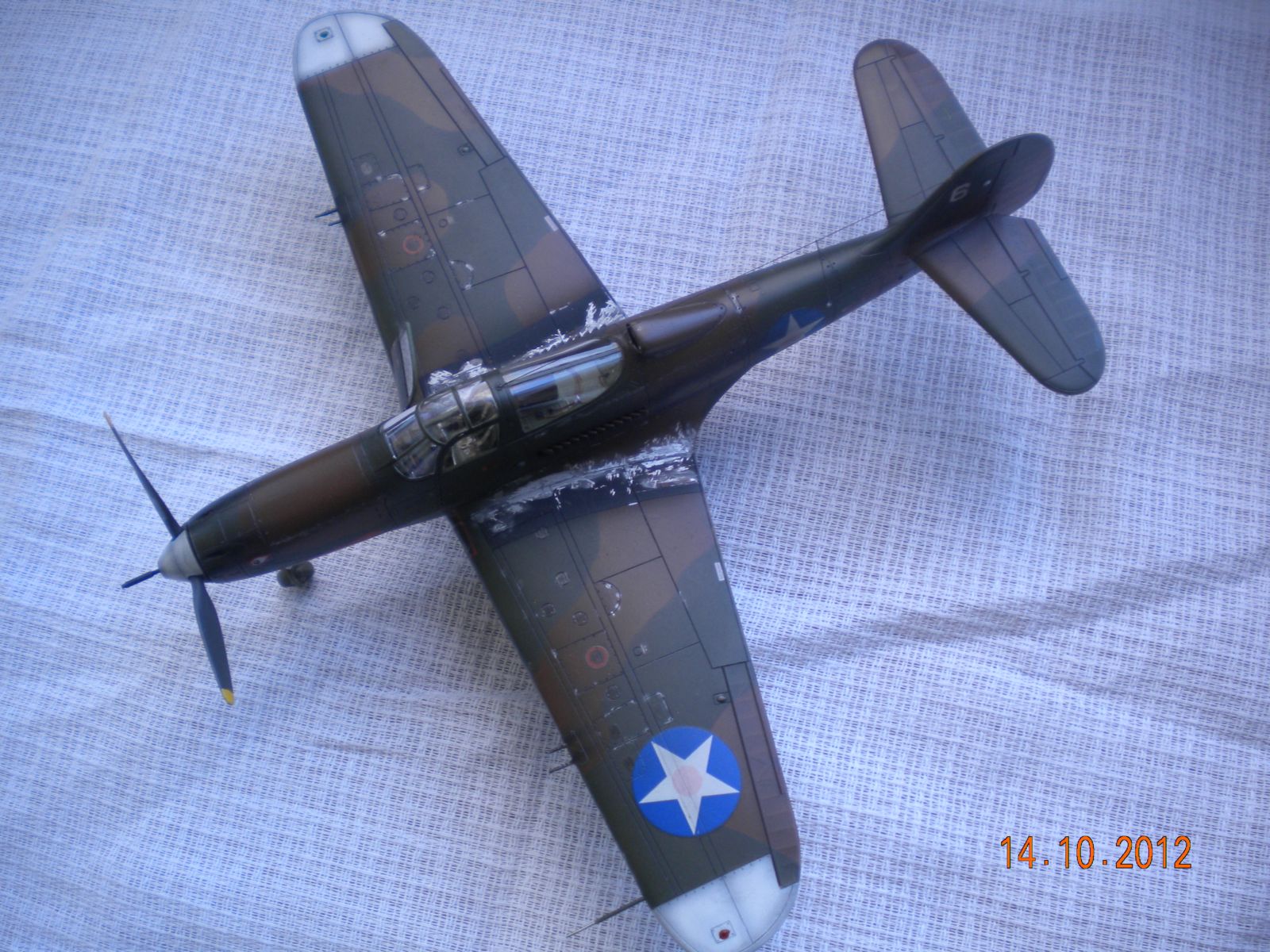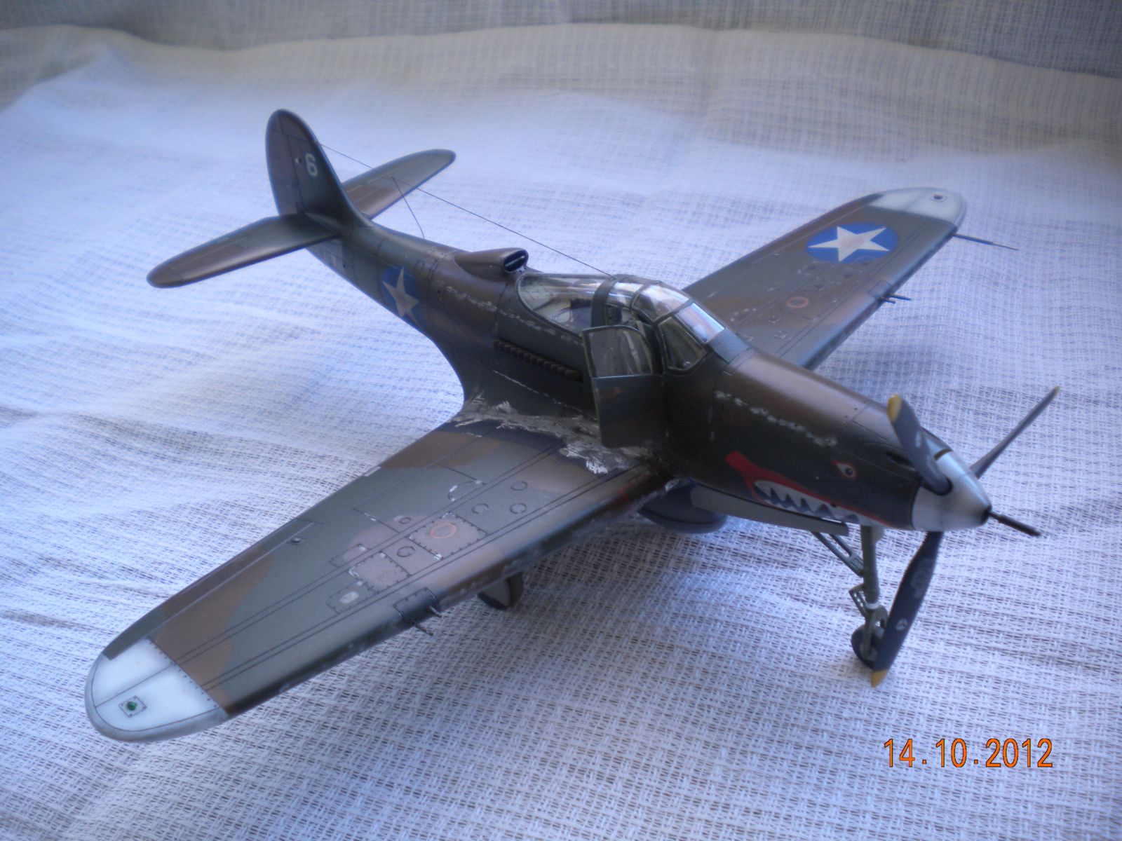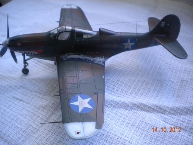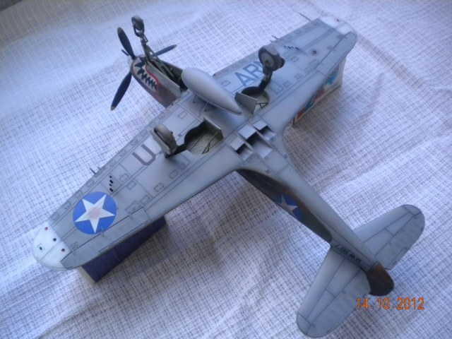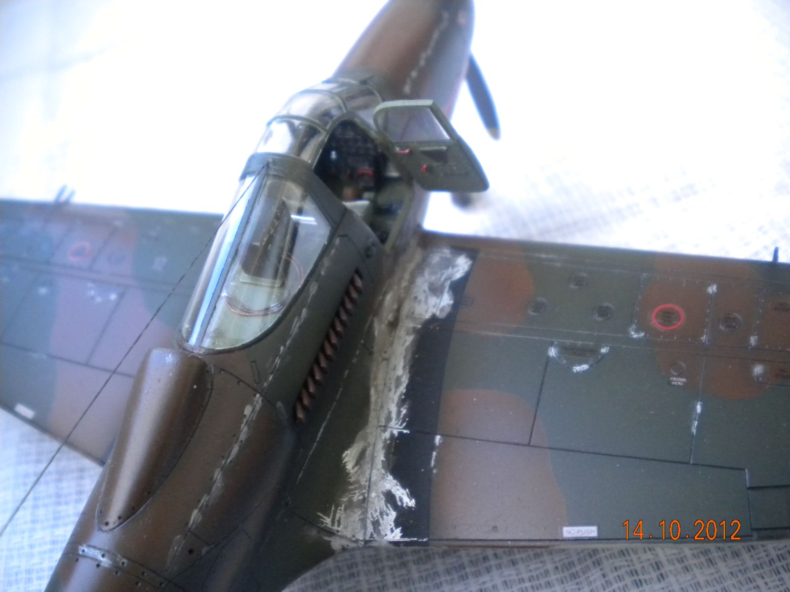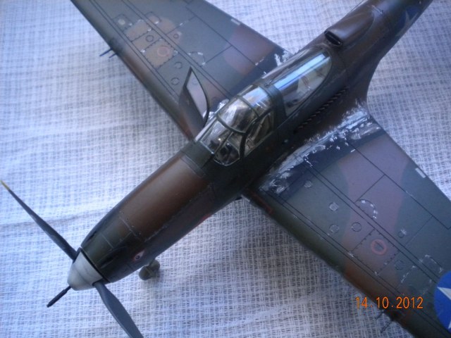 ЁХ,знакома модель,собирал такую,все подводные камни сборки знакомы.В-общем как бы нормально,но видна подложка деколи,по центроплану какие-то разводы металла,это уже перебор полный! Изоляторов на антенне нет,стволы пулемётов полный...Поставьте иглы,обожжённые на огне спички или свечки.Выделение расшивки понравилось.На своей модели вижу кучу косяков,поэтому не придираюсь.Но металл на центроплана закрасьте,там коврики лежали для техноты.Либо сколы-потёртости солевым методом сделайте.