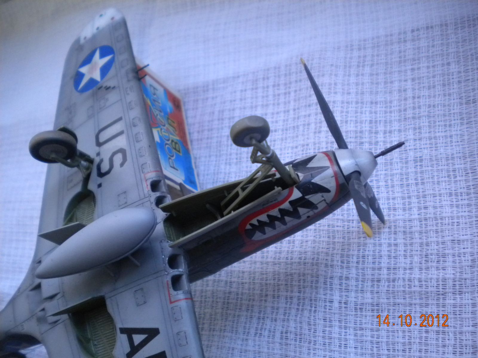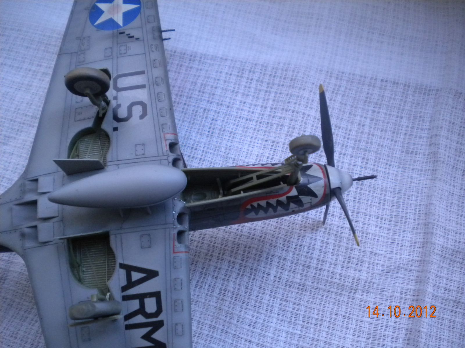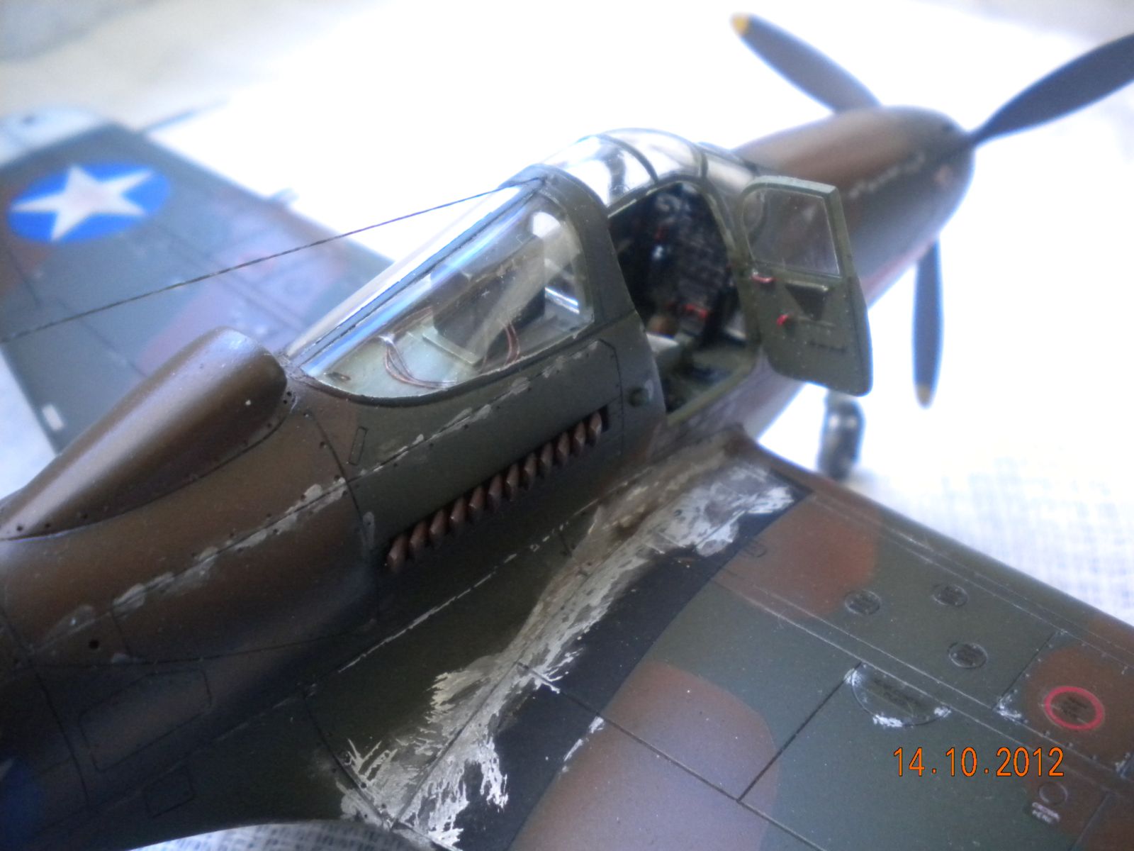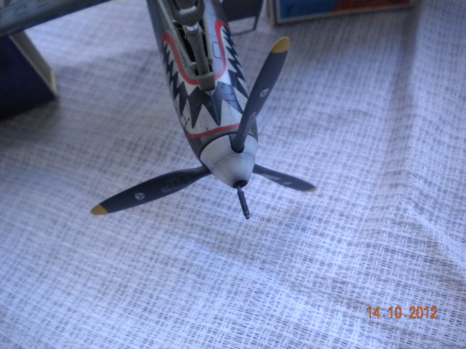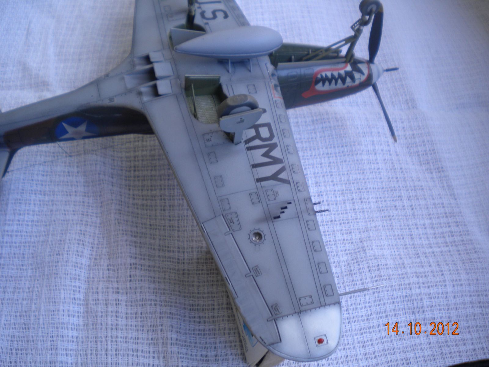 ЁХ,знакома модель,собирал такую,все подводные камни сборки знакомы.В-общем как бы нормально,но видна подложка деколи,по центроплану какие-то разводы металла,это уже перебор полный! Изоляторов на антенне нет,стволы пулемётов полный...Поставьте иглы,обожжённые на огне спички или свечки.Выделение расшивки понравилось.На своей модели вижу кучу косяков,поэтому не придираюсь.Но металл на центроплана закрасьте,там коврики лежали для техноты.Либо сколы-потёртости солевым методом сделайте.