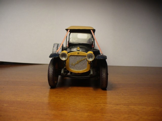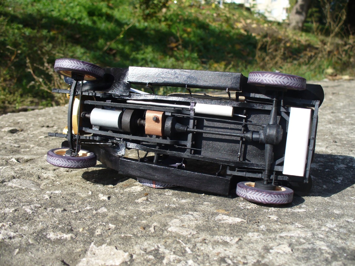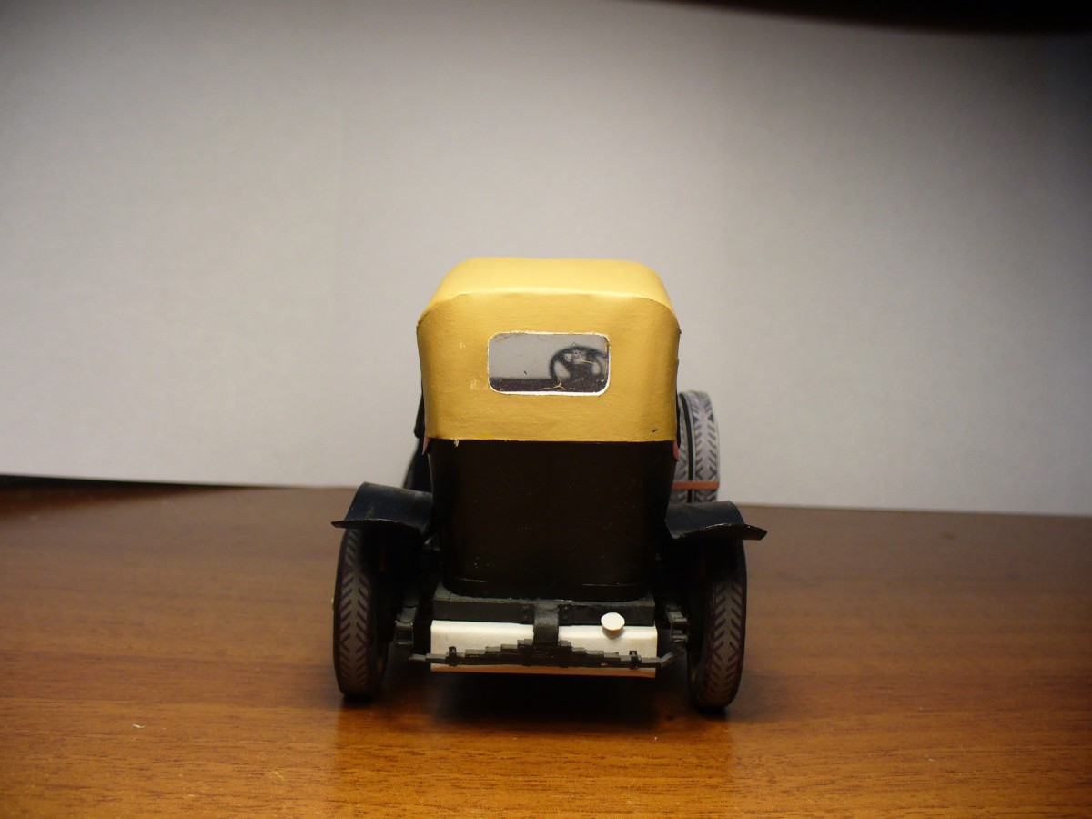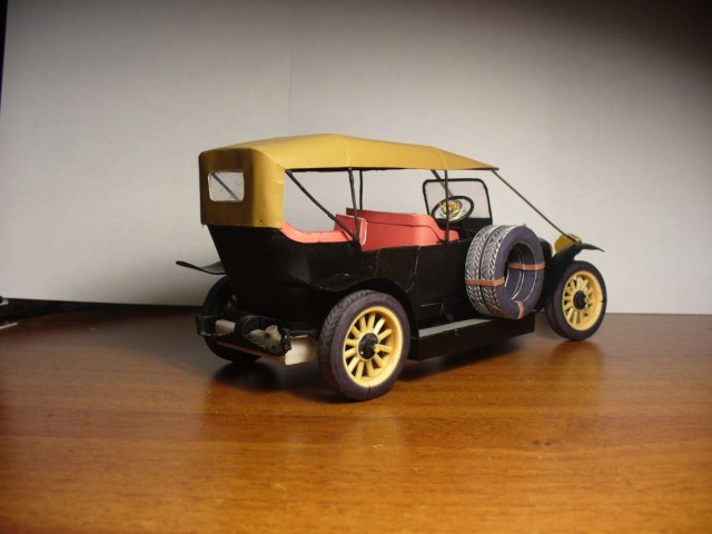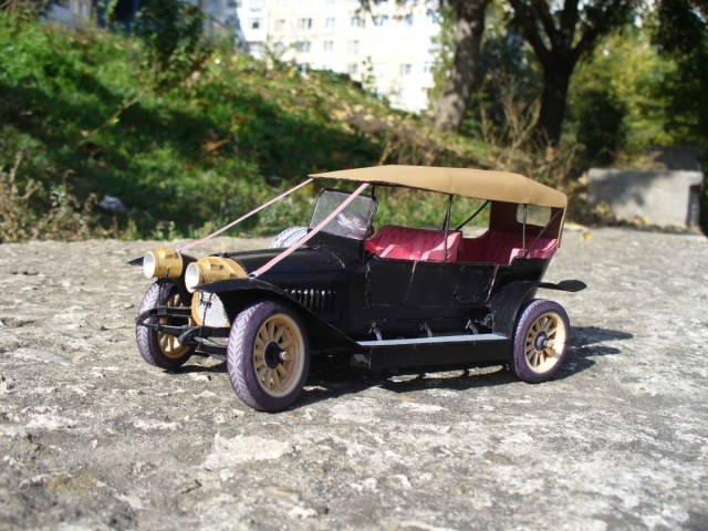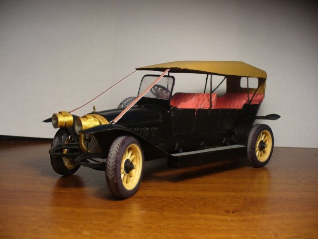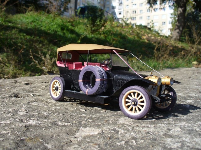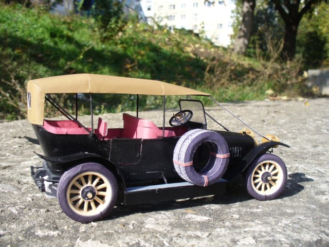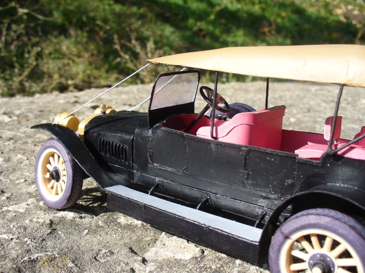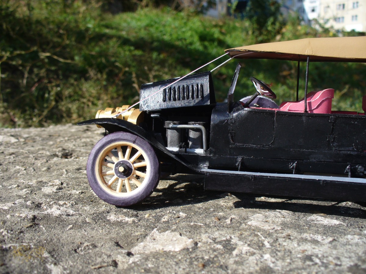 Модель изготовлена из ватмана. Также использовалась проволока, зубочистки (на колеса) и провод из китаиских наушников (руль). Надпись на радиаторе вырезана вручную из ватмана. Частично покрашена акрилом "Звезда". частичная окраска обусловлена тем что тестовая сборка.