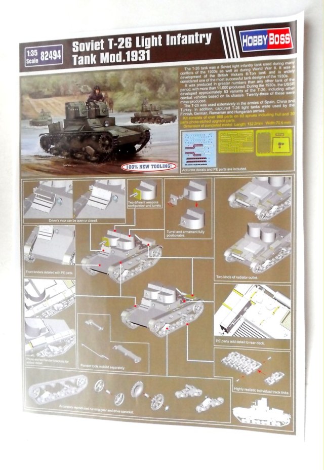 Предлагаю Вашему вниманию обзор на новинку от ХоббиБосс - двухбашенный легкий танк Т-26. Модель любезно предоставлена уважаемым WWG.