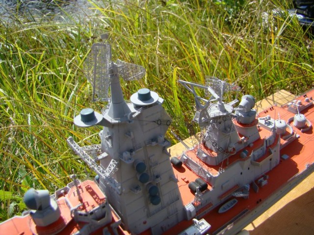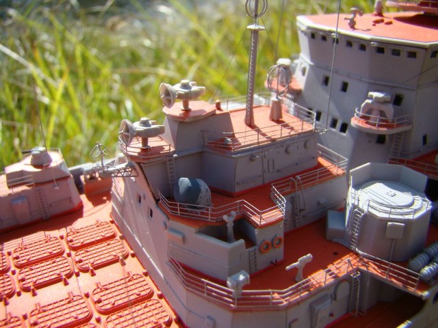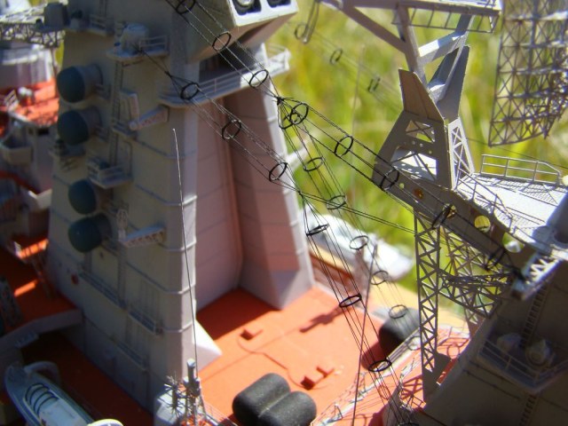 А по модели очень впечатлила проделанная работа,кольцевые антены просто убили.Только цвет палуб вызывает некоторые вопросы.По моему они окрашивались в более темнвй цвет.