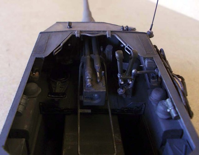 Хороший аппарат. Жаль, не видно места механика водителя с рычагами и приборами, и радиста с радиооборудованием. Трумпетер дал хорошую начинку.