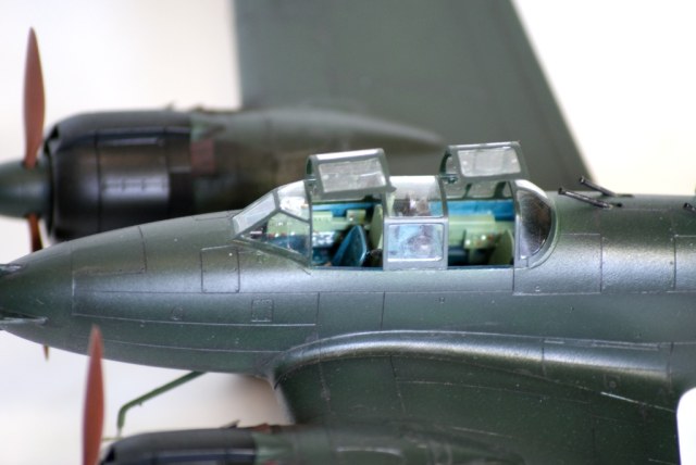 Окрас и модификацию я выбрал ночного истребителя, соответственно и окрас однотонный снизу и с верху, но к сожалению базовую краску на мой взгляд надо было немного высветлить белым, и модель из-за этого получилась немного темноватой.