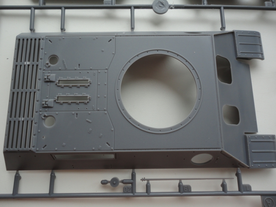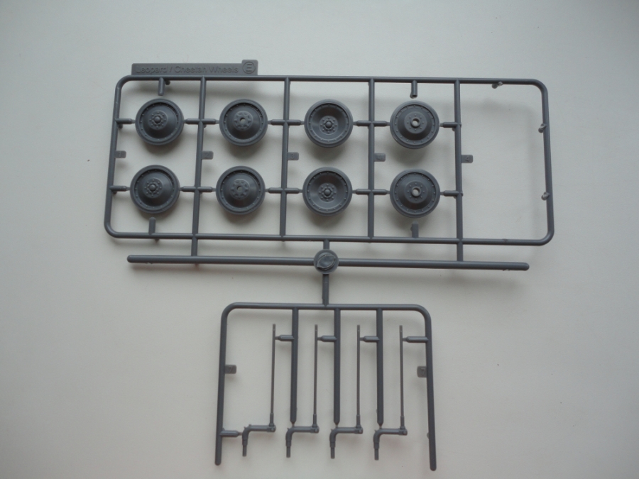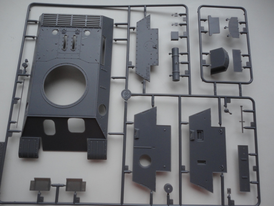 В коробке из не очень плотного картона назодятся 23 литника с деталями. Пластик серого цвета с полуматовым блеском, мягкий, очень хорошо обрабатывается, качество литья просто поразило, как у трмпетра точно, скорее даже ближе к дрэгону, на облой, стыки пресформ и утяжины даже намека нет. В наборе много маленьких литников для сборки различной мелочи, домкрат, шанец и т.п.