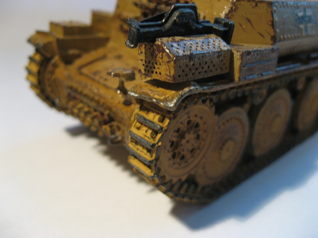 Слой краски слишком толстый, сколы ужасны, траки окрашены в цвет базы, конвойный фонарь в цвет базы, брусок под домкрат тоже в цвет базы. Зато сам домкрат наоборот, не в цвет базы.