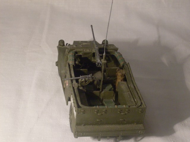 По модели...антенна есть - а РСТ нет...надо добавить, и фидер тоже(кабель питния, между РСТ и антенной)...не логично - все закрасили а звезды оставили...на капоте идентификационные номера сухопотных войск США оставались(судя по фото)...стекла показали(+) а дворники ????