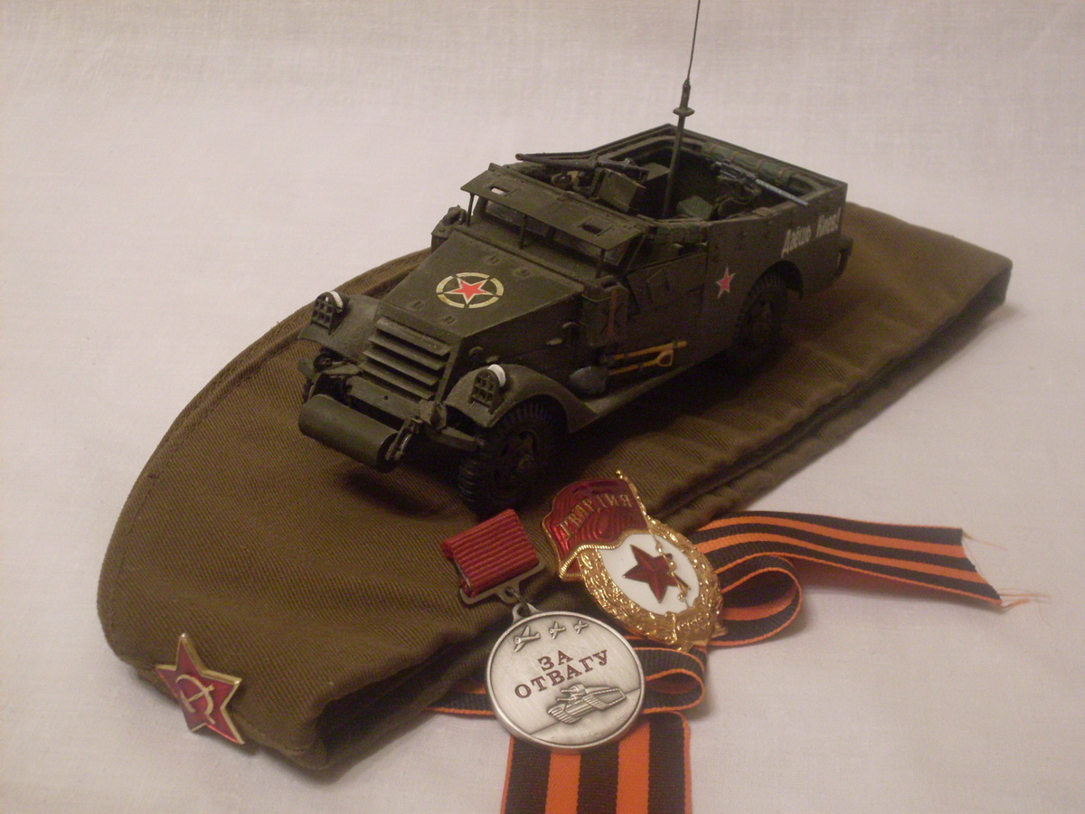 -Далее, если бы на скауте стояла символика США, то фотогравировать его с нашими наградами действительно неуважительно и нелогично. Но на нем стоит символика РККА и ,следовательно, на этой машине воевали и погибали советские солдаты, медали которых лежат рядом с ней.