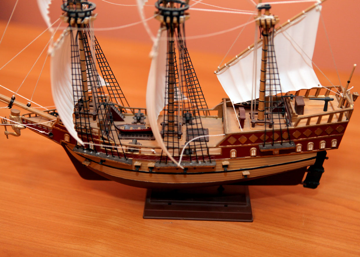 О, и у меня такой был, у бабуси на шкафу стоял, тож не крашеный, точнее в начале крашеный гуашью, а после того, как я его плавать в ванне учил, стал не крашеный. А ещё помню, кады такелаж тянул, половину корабля переломал. Апосля этого любовь к парусникам улетучилась. (мне тады правда лет 9 было).