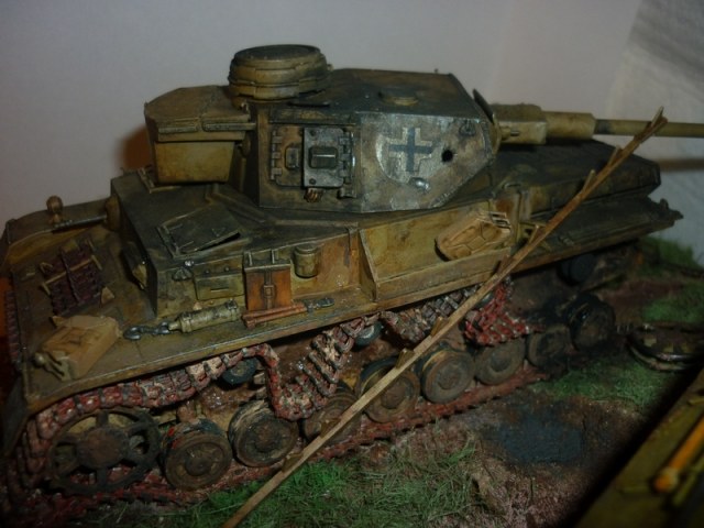 ...Стало понятнее,несомненно,значит "Пантера" ещё двигается.Только вот теперь название диорамы странное.Для "Один-готов!" не хватает орудия,"уделавшего" эту 4-ку.