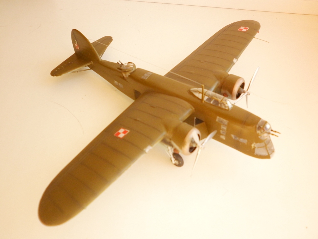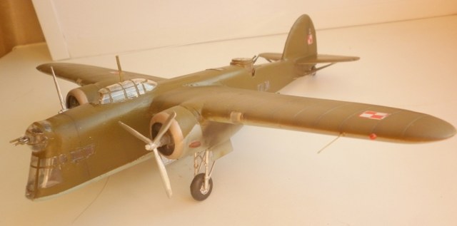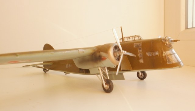 О модели - Пластик тонкий , мягкий , с неплохой деталировкой и приличной инструкцией. При сборке крыло и планер усилены силовым набором из пластика. Из тянутого литника и сыростирола сделан интерьер кабины и ниш шасси . Двигатели - смоляные копии с смоляных "Пегасов" от "Ардпол". Шасси - самодельные из игл и фольги . Колеса- от "Дарт Херальд", винты и пулеметы - от "Лося".