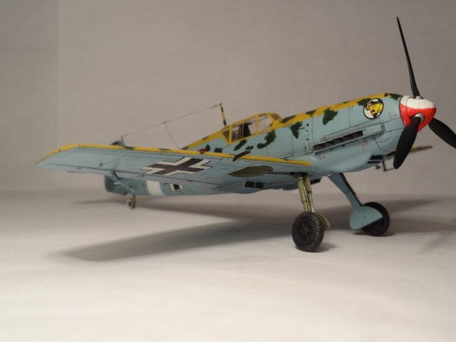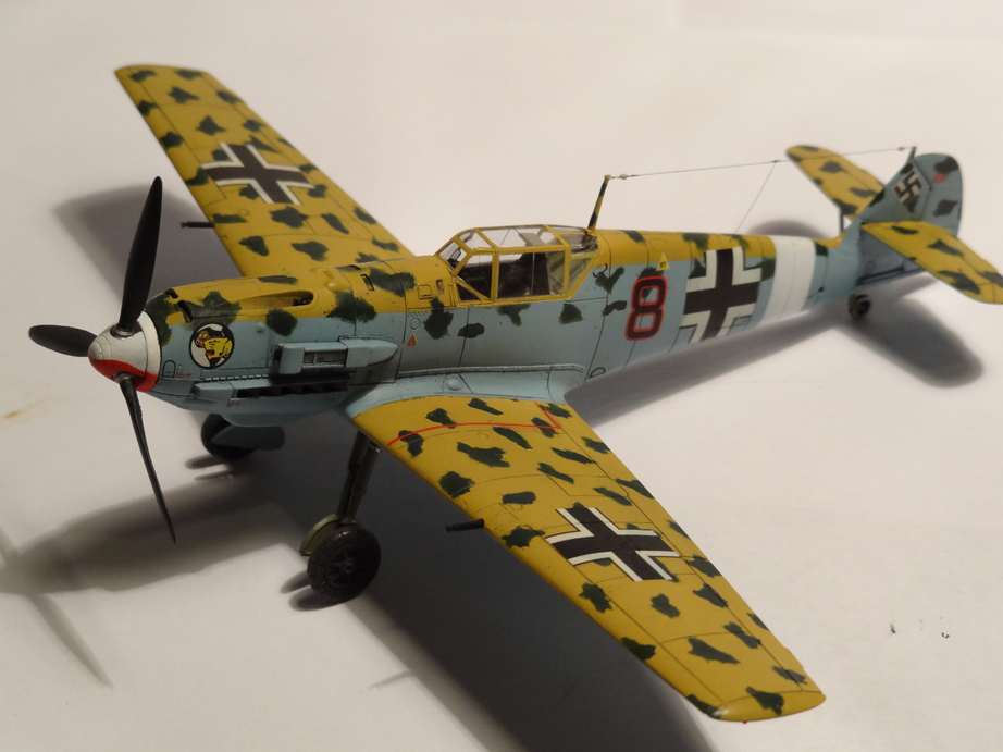Доброго времени суток. Представляю вашему вниманию очередную свою работу. Прототипом послужил самолет Франца Эллеса из 2./JG27. Модель собрана из каропки в небольшими доработками. Изготовил антенный трос, доработал стойки шасси. Пулеметы точеные не нашел, родные высверлил.Красил аканом. Тонировал гуашью и пигментами тамия. Приятного просмотра. Критику и пожелания приму с благодарностью. С уважением, Алексей.