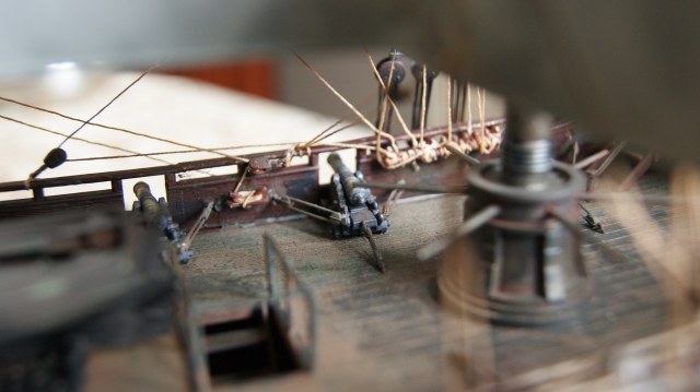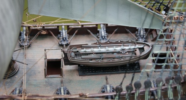 По поводу окраски могу сказать следующее: издалека смотриться непохо, но на крупных ближних планах начинают вылезать какие-то пятна (фото с палубы и перо руля). Если это тонировка или попытка цветомодуляции, то прием не получился. Если это непрокрас, то серьезная ошбика.