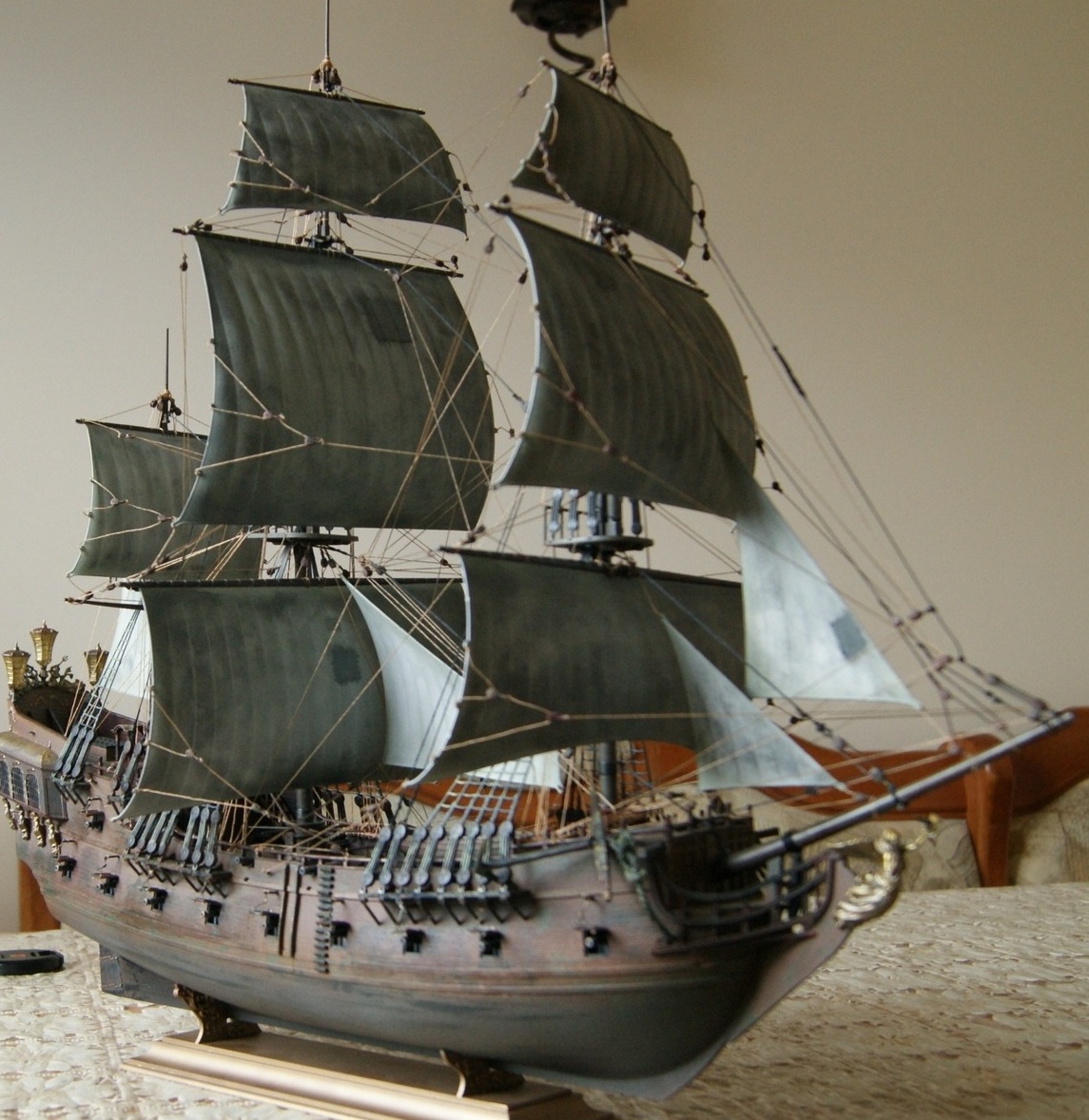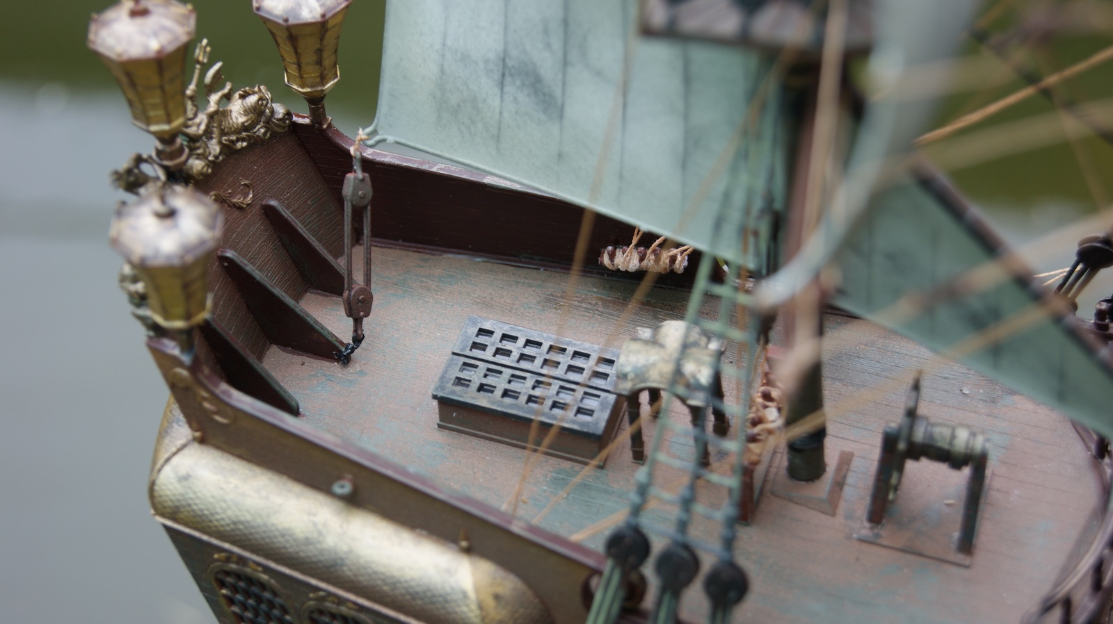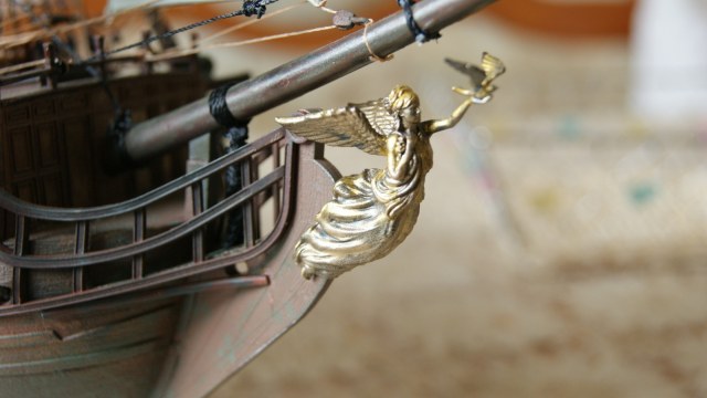 Отличная носовая фигура, хорошо затонированные паруса - это плюс. Эксперименты по окраске с элементами облезлости поддерживаю, рано или поздно должно получиться хорошо... наверное, в этот раз - не очень (хотя сам такой).