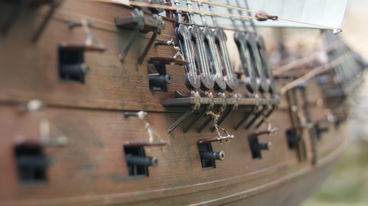 Парусник - это не танк или самолет. Модель может быть безукоризненно собрана, окрашена и затонированна за гранью фантастики. Но абсолютно никакой или упрощенный такелаж по инструкции мигом убьет модель. Для примера из галереи: