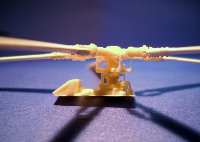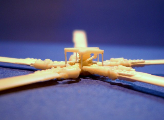 детализация втулки, сальника, рычагов, автомата перекоса радует. это значительно точнее, чем то, что дается Хасей. отдельно стоит остановится на лопастях. они тоньше чем у Хаси в наборе, детализация клепа в месте крепления радует. единственный момент, который огорчает, это то, что 2 из 5 демпферов оказались с обломанными штоками и то, что лопасти на втулку крепятся без каких либо упоров и выполнены без небольшого провиса, что видимо решается горячей водой. надо будет постараться выровнять все детали, иначе винт может получится кривым. но такое крепление, спокойно позволяет собрать несущий винт в стояночном положении, когда лопасти чуть отклонены задней кромкой в сторону земли. а штоки демпферов легко заменяются проволокой нужного сечения. посадочное место для НВ пока что не примерял на хасевский набор, но думаю, сложностей возникнуть не должно.