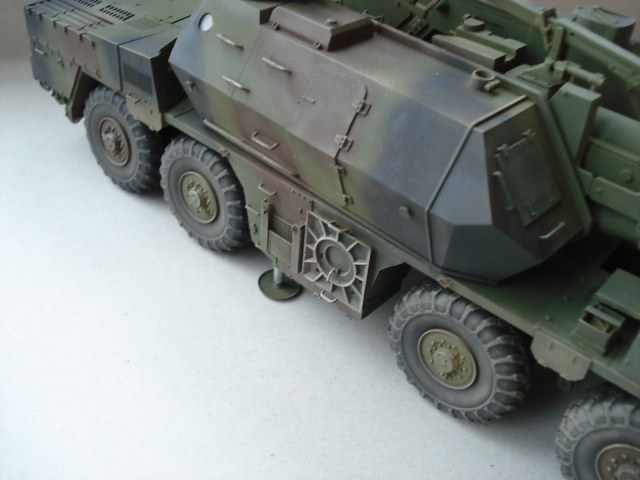 Gamazkov, серебрящиеся декали (те, что на бортах кабины) были удалены. На счет поручней согласен - даже спорить не стану. Габаритные фонари и стопы изначально были окрашены ярко-красным тамиевским лаком. Их яркость и глянец притухли от матового лака.